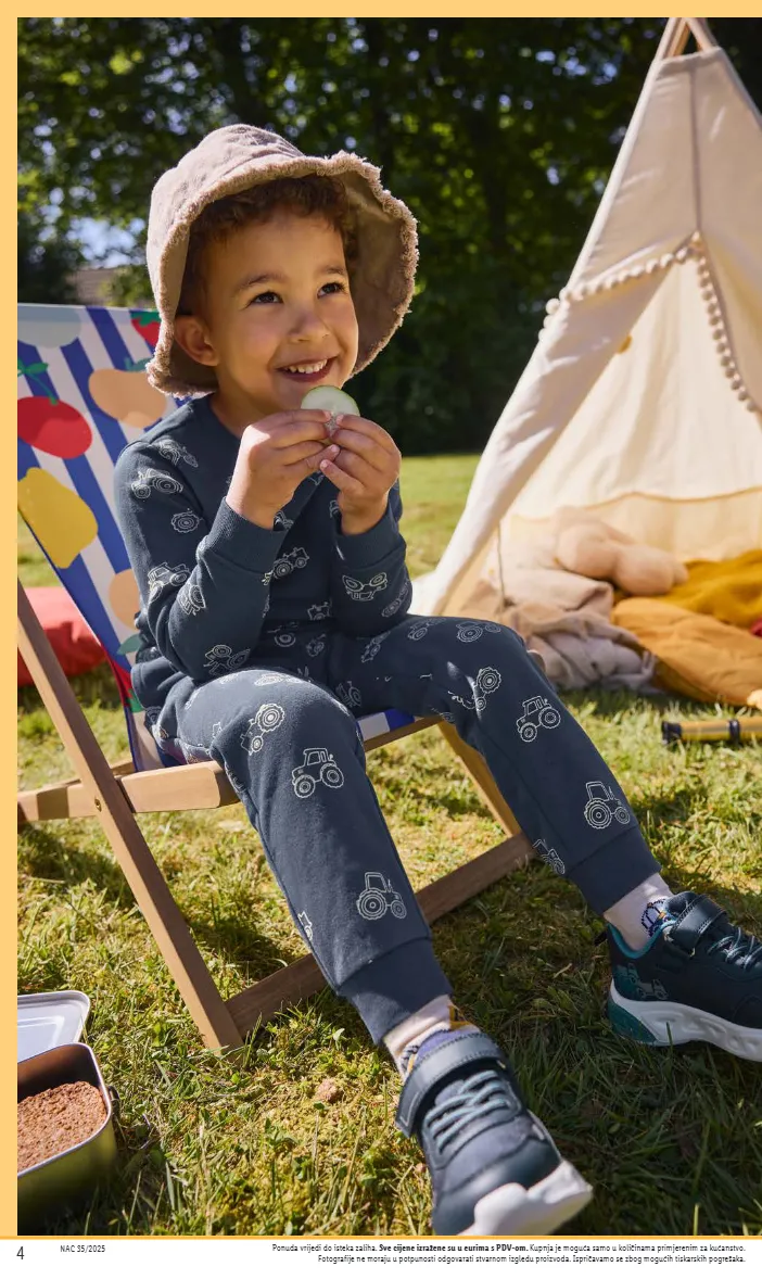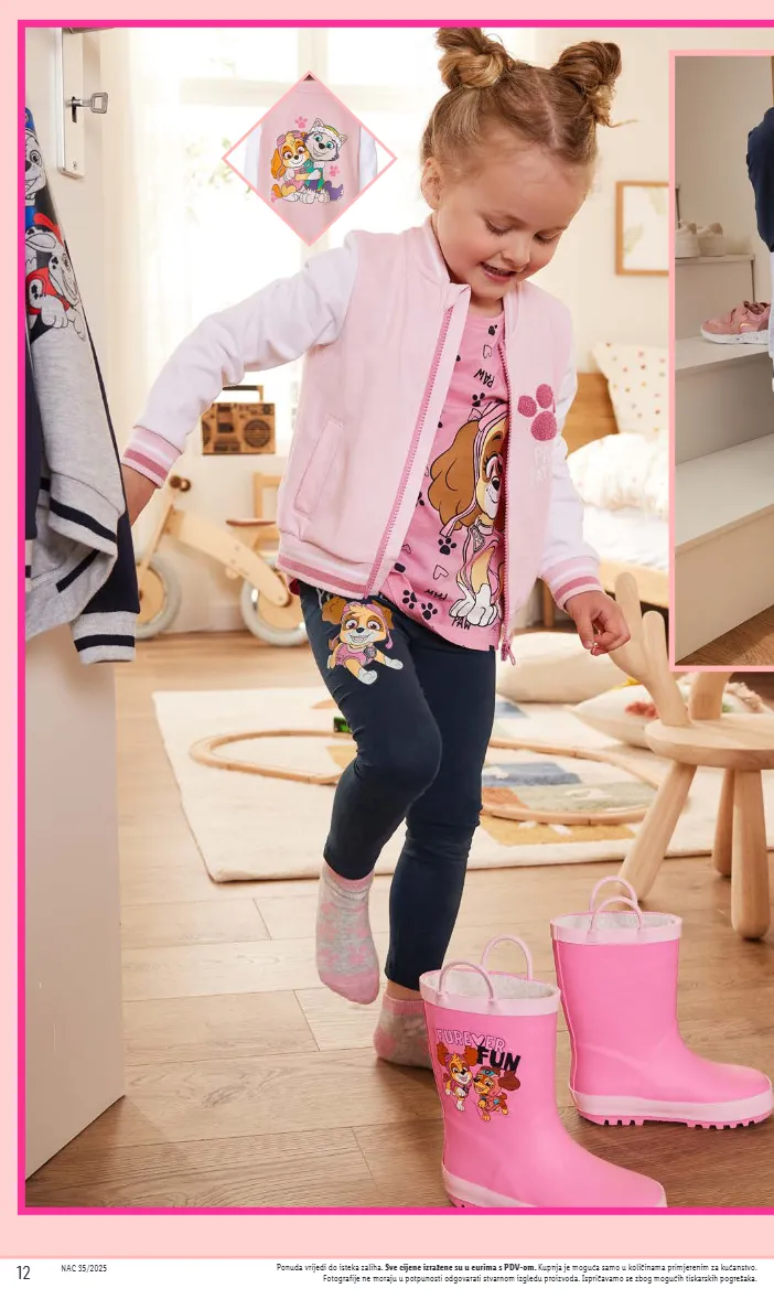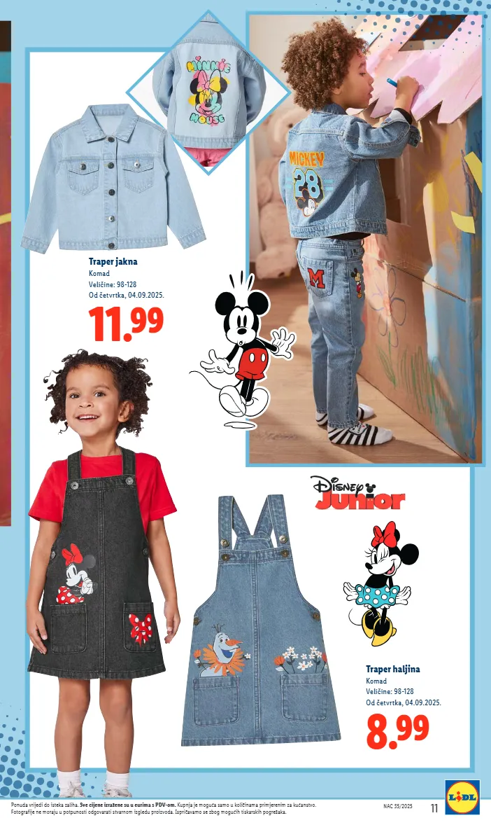 nac 35/2025 13 6.99 haljina komad veličine: 98-128 od ponedjeljka, 08.09.2025. 8.99 jakna komad veličine: 98-128 od ponedjeljka, 08.09.2025. 5.99 sportske hlače komad veličine: 98-128 od ponedjeljka, 08.09.2025. 11.99 gumene čizme par veličine: 25-30 od ponedjeljka, 08.09.2025. ponuda vrijedi do isteka zaliha. sve cijene izražene su u eurima s pdv-om. kupnja je moguća samo u količinama primjerenim za kućanstvo. fotografije ne moraju u potpunosti odgovarati stvarnom izgledu proizvoda. ispričavamo se zbog mogućih tiskarskih pogrešaka.