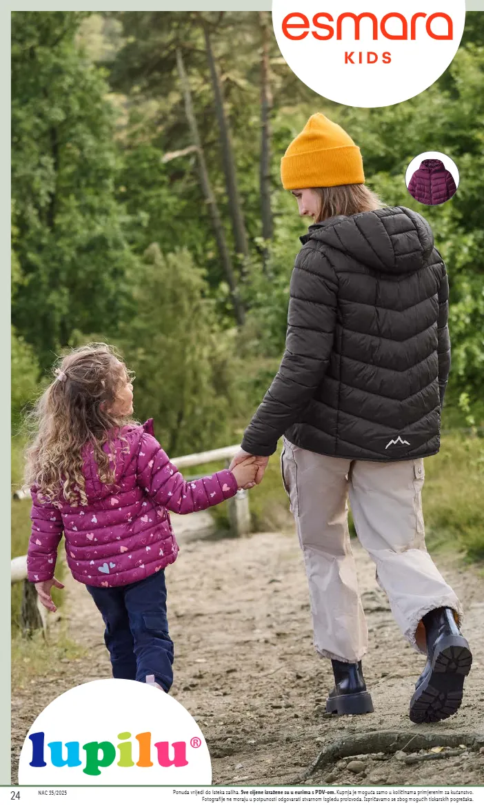 nac 35/2025 5 ponuda vrijedi do isteka zaliha. sve cijene izražene su u eurima s pdv-om. kupnja je moguća samo u količinama primjerenim za kućanstvo. fotografije ne moraju u potpunosti odgovarati stvarnom izgledu proizvoda. ispričavamo se zbog mogućih tiskarskih pogrešaka. 3.49 lupilu® sportske hlače komad veličine: 98-128 od četvrtka, 28.08.2025. 7.99 lupilu® trenirka set veličine: 98-128 od četvrtka, 28.08.2025. 2 dijela