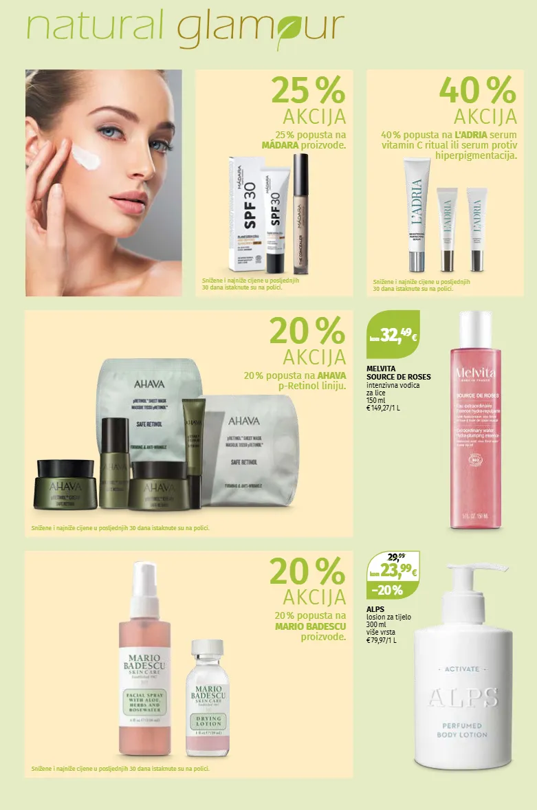 kom 32, 49 € kom 23, 99 € − 20 % 29, 99 snižene i najniže cijene u posljednjih 30 dana istaknute su na polici. snižene i najniže cijene u posljednjih 30 dana istaknute su na polici. snižene i najniže cijene u posljednjih 30 dana istaknute su na polici. melvita source de roses intenzivna vodica za lice 150 ml € 149,27 / 1 l alps losion za tijelo 300 ml više vrsta € 79,97 / 1 l snižene i najniže cijene u posljednjih 30 dana istaknute su na polici. 25 % akcija 25 % popusta na mádara proizvode. 20 % akcija 20 % popusta na mario badescu proizvode. 20 % akcija 20 % popusta na ahava p-retinol liniju. 40 % akcija 40 % popusta na l' adria serum vitamin c ritual ili serum protiv hiperpigmentacija.