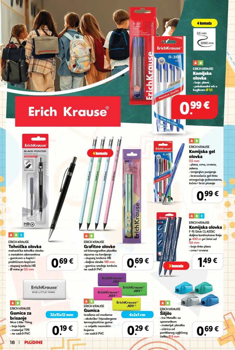 0 0 . . 39 39 € 1 1 . . 39 € 39 € 0 0 . . 79 79 € 0 0 . . 69 69 € erich krause kemijska olovka • g-tone stick 0,5 • petokanalni vrh s kuglicom ø 0,5 mm • boja: crna a b c erich krause gumica • blink • materijal: eco-pvc a b c erich krause drvene bojice • jolly friends • 3 mm a b erich krause škare • fun cut animals • oštrice od nehrđajućeg čelika • 12,5 cm a b erich krause kemijska olovka • petokanalni vrh s kuglicom ø 0,5 mm • izmjenjivo punjenje • boja: plava ili crna a b erich krause blok za crtanje • jolly friends • format a4 • papir od 120 gsm • 30 stranica a 0 0 . . 99 99 € hit cijena! već od 0 0 . . 69 69 € erich krause bojice drvene • jolly friends • 3 mm a b 1 1 . . 29 29 € 66x18x6 mm 0 0 . . 49 49 € erich krause gumica • nice little thing • materijal: tpr • ne sadrži pvc a b c 32x15x12 mm 210x297 mm 4 komada 2 komada 12 komada 18 komada 16