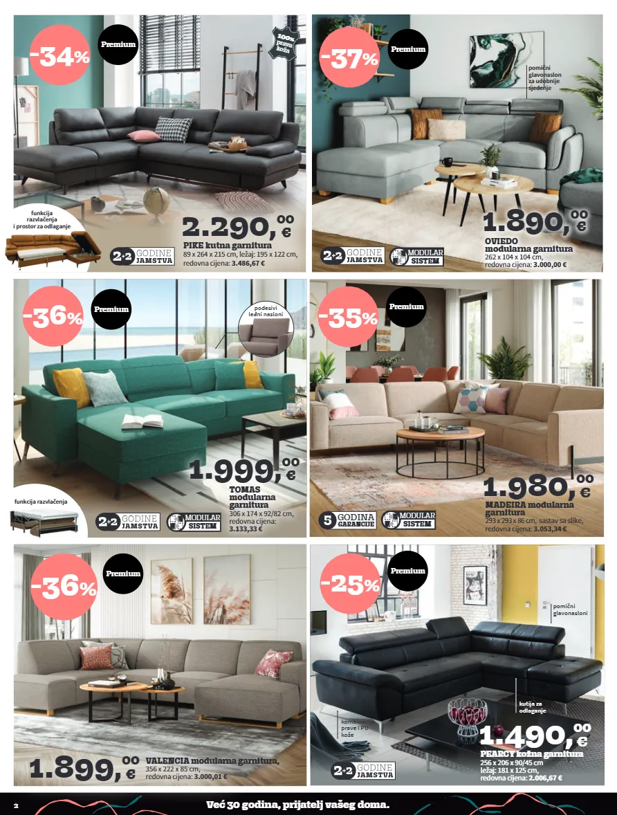 2 već 30 godina, prijatelj vašeg doma. pomični glavonaslon za udobnije sjedenje modular sistem oviedo modularna garnitura 262 x 104 x 104 cm, redovna cijena: 3.000,00 € 1.890 , 00 € premium - 37 % 1.980, 00 € madeira modularna garnitura 293 x 293 x 86 cm, sastav sa slike, redovna cijena: 3.053,34 € premium - 35 % modular sistem garancije godina modular sistem podesivi leđni nasloni premium - 36 % tomas modularna garnitura 306 x 174 x 92/82 cm, redovna cijena: 3.133,33 € 1.999 , 00 € 100 % prava koža pike kutna garnitura 89 x 264 x 215 cm, ležaj: 195 x 122 cm, redovna cijena: 3.486,67 € 2.290 , 00 € funkcija razvlačenja i prostor za odlaganje funkcija razvlačenja premium - 34 % valencia modularna garnitura, 356 x 222 x 85 cm, redovna cijena: 3.000,01 € 1.899 , 00 € - 36 % premium pomični glavonasloni kombinacija prave i pu kože kutija za odlaganje premium - 25 % pearcy kožna garnitura 256 x 206 x 90/45 cm ležaj: 181 x 125 cm, redovna cijena: 2.006,67 € 1.490, 00 €