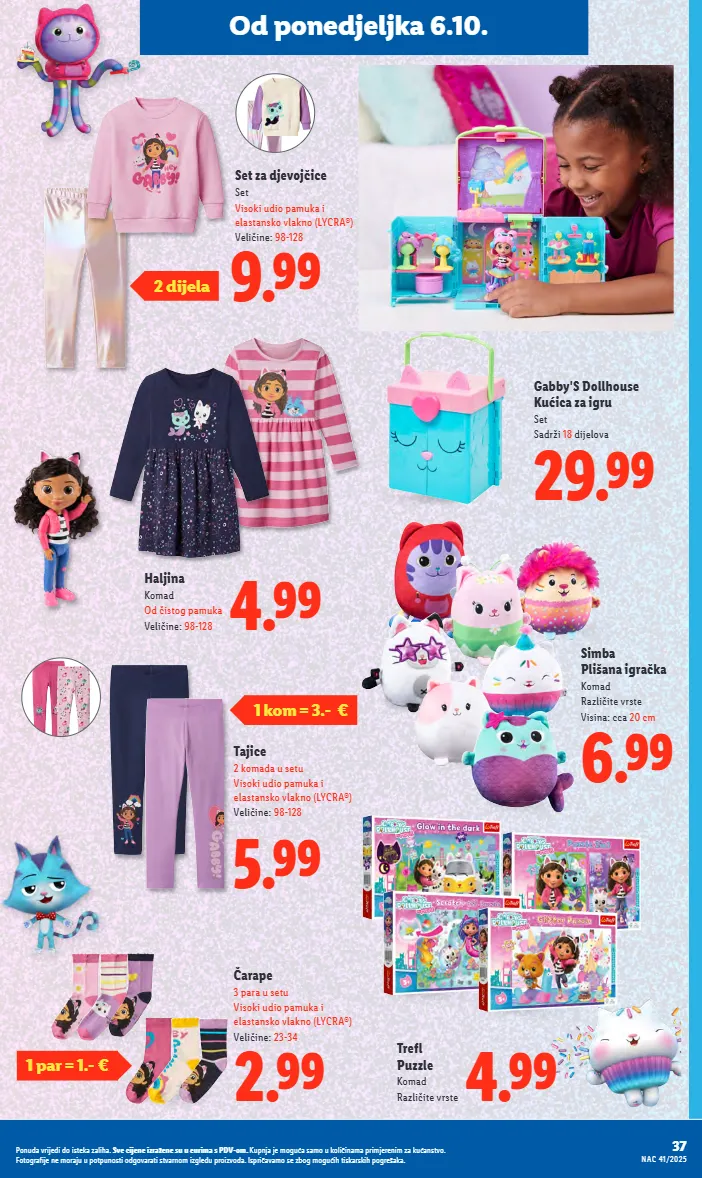 od ponedjeljka 6.10. 4.99 haljina komad od čistog pamuka veličine: 98-128 29.99 gabby's dollhouse kućica za igru set sadrži 18 dijelova 4.99 trefl puzzle komad različite vrste 2.99 čarape 3 para u setu visoki udio pamuka i elastansko vlakno (lycra®) veličine: 23-34 5.99 tajice 2 komada u setu visoki udio pamuka i elastansko vlakno (lycra®) veličine: 98-128 9.99 set za djevojčice set visoki udio pamuka i elastansko vlakno (lycra®) veličine: 98-128 2 dijela 6.99 simba plišana igračka komad različite vrste visina: cca 20 cm 1 kom = 3.- € 1 par = 1.- € 37 nac 41/2025 ponuda vrijedi do isteka zaliha. sve cijene izražene su u eurima s pdv-om. kupnja je moguća samo u količinama primjerenim za kućanstvo. fotografije ne moraju u potpunosti odgovarati stvarnom izgledu proizvoda. ispričavamo se zbog mogućih tiskarskih pogrešaka.