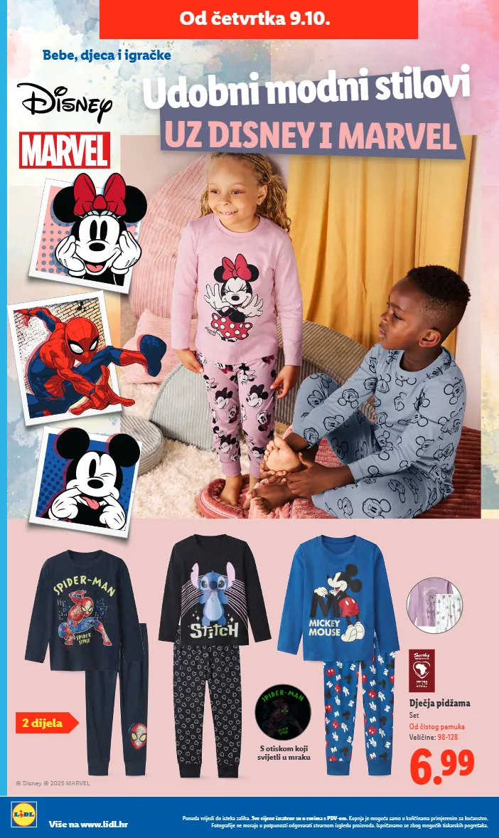 udobni modni stilovi uz disney i marvel bebe, djeca i igračke © disney © 2025 marvel od četvrtka 9.10. 6.99 dječja pidžama set od čistog pamuka veličine: 98-128 ponuda vrijedi do isteka zaliha. sve cijene izražene su u eurima s pdv-om. kupnja je moguća samo u količinama primjerenim za kućanstvo. fotografije ne moraju u potpunosti odgovarati stvarnom izgledu proizvoda. ispričavamo se zbog mogućih tiskarskih pogrešaka. više na www.lidl.hr s otiskom koji svijetli u mraku 2 dijela
