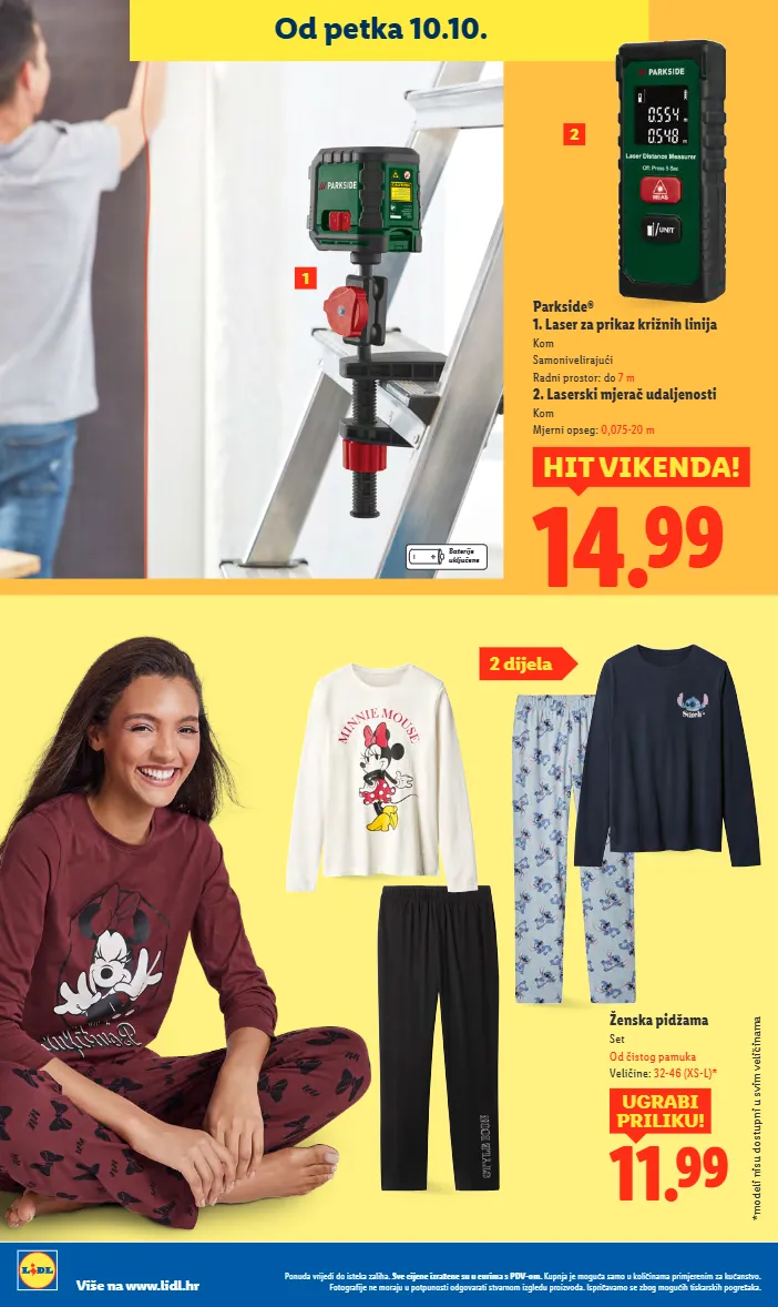 baterije uključene ženska pidžama set od čistog pamuka veličine: 32-46 (xs-l)* 11.99 u grabi priliku! 2 dijela od petka 10.10. parkside® 1. laser za prikaz križnih linija kom samonivelirajući radni prostor: do 7 m 2. laserski mjerač udaljenosti kom mjerni opseg: 0,075-20 m 14.99 hit vikenda! 1 2 *modeli nisu dostupni u svim veličinama ponuda vrijedi do isteka zaliha. sve cijene izražene su u eurima s pdv-om. kupnja je moguća samo u količinama primjerenim za kućanstvo. fotografije ne moraju u potpunosti odgovarati stvarnom izgledu proizvoda. ispričavamo se zbog mogućih tiskarskih pogrešaka. više na www.lidl.hr