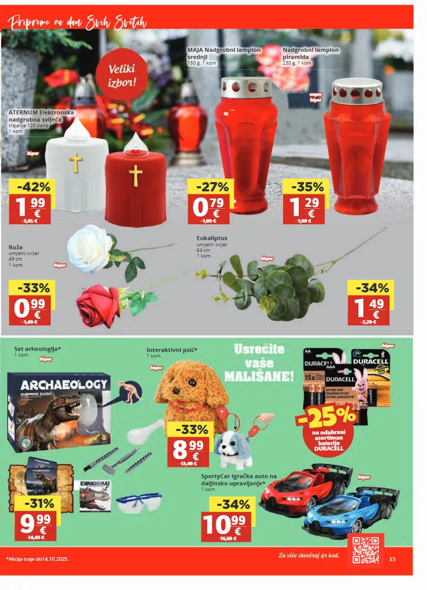 15 pripreme za dan svih svetih *akcija traje do14.10.2025. maja nadgrobni lampion srednji 150 g, 1 kom nadgrobni lampion piramida 230 g, 1 kom aternum elektronska nadgrobna svijeća trajanje 120 dana 1 kom ruža umjetni cvijet 49 cm 1 kom eukaliptus umjetni cvijet 64 cm 1 kom sportycar igračka auto na daljinsko upravljanje* 1 kom interaktivni psić* 1 kom set arheologija* 1 kom -27% 0 79 1,09 € -33% 0 99 1,49 € -34% 1 49 2,29 € -33% 8 99 13,49 € -31% 9 99 14,49 € -35% 1 29 1,99 € -42% 1 99 3,45 € -34% 10 99 16,69 € -25% -25% na odabrani asortiman baterija duracell hiper hiper super super hiper hiper hiper hiper hiper hiper hiper hiper hiper hiper hiper hiper hiper hiper