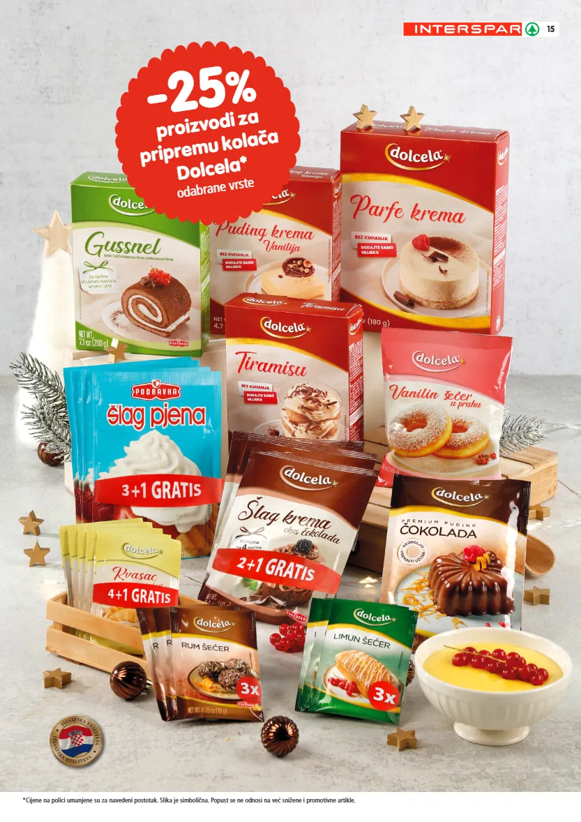 -25 % proizvodi za pripremu kolača Dolcela* odabrane vrste *Cijene na polici umanjene su za navedeni postotak. Slika je simbolična. Popust se ne odnosi na već snižene i promotivne artikle. 15