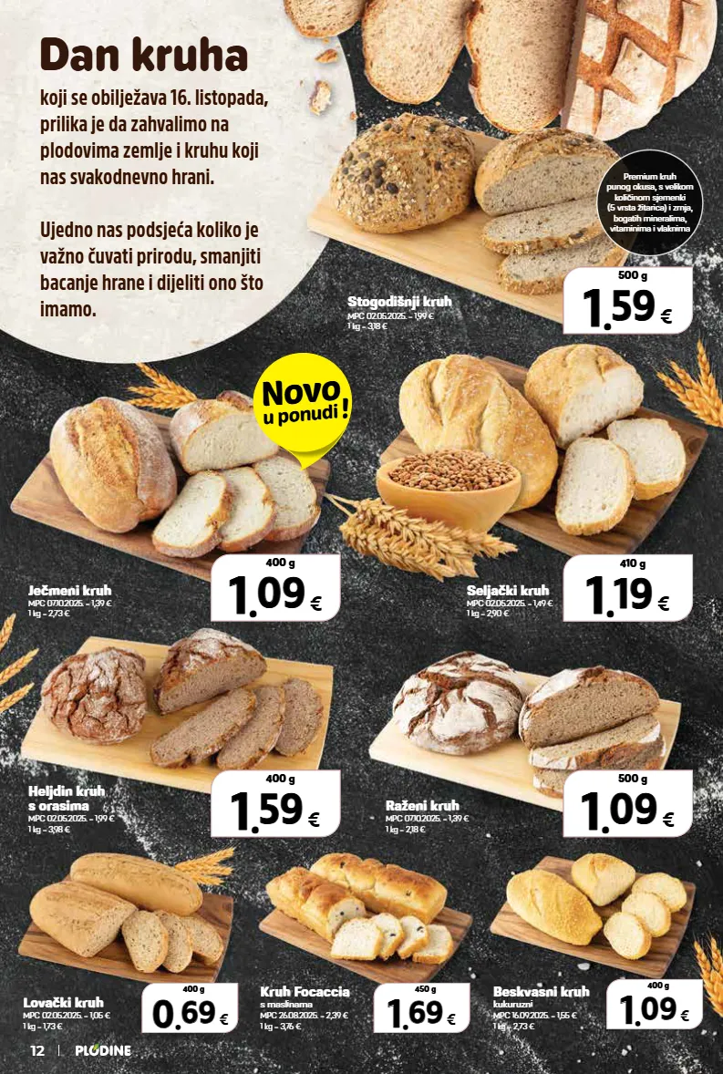 kruh focaccia s maslinama mpc 26.08.2025. = 2,39 € 1 kg = 3,76 € raženi kruh mpc 07.10.2025. = 1,39 € 1 kg = 2,18 € beskvasni kruh kukuruzni mpc 16.09.2025. = 1,55 € 1 kg = 2,73 € lovački kruh mpc 02.05.2025. = 1,05 € 1 kg = 1,73 € heljdin kruh s orasima mpc 02.05.2025. = 1,99 € 1 kg = 3,98 € stogodišnji kruh mpc 02.05.2025. = 1,99 € 1 kg = 3,18 € premium kruh punog okusa, s velikom količinom sjemenki (5 vrsta žitarica) i zrnja, bogatih mineralima, vitaminima i vlaknima koji se obilježava 16. listopada, prilika je da zahvalimo na plodovima zemlje i kruhu koji nas svakodnevno hrani. ujedno nas podsjeća koliko je važno čuvati prirodu, smanjiti bacanje hrane i dijeliti ono što imamo. dan kruha seljački kruh mpc 02.05.2025. = 1,49 € 1 kg = 2,90 € ječmeni kruh mpc 07.10.2025. = 1,39 € 1 kg = 2,73 € 1 1 . . 09 09 € 400 g 1 1 . . 09 09 € 400 g 1 1 . . 19 19 € 410 g 1 1 . . 19 19 € 410 g 1 1 . . 59 59 € 500 g 1 1 . . 59 59 € 500 g 1 1 . . 59 59 € 400 g 1 1 . . 59 59 € 400 g 1 1 . . 69 69 € 450 g 1 1 . . 69 69 € 450 g 1 1 . . 09 09 € 400 g 1 1 . . 09 09 € 400 g 1 1 . . 09 09 € 500 g 1 1 . . 09 09 € 500 g 0 0 . . 69 69 € 400 g 0 0 . . 69 69 € 400 g novo u ponudi ! 12