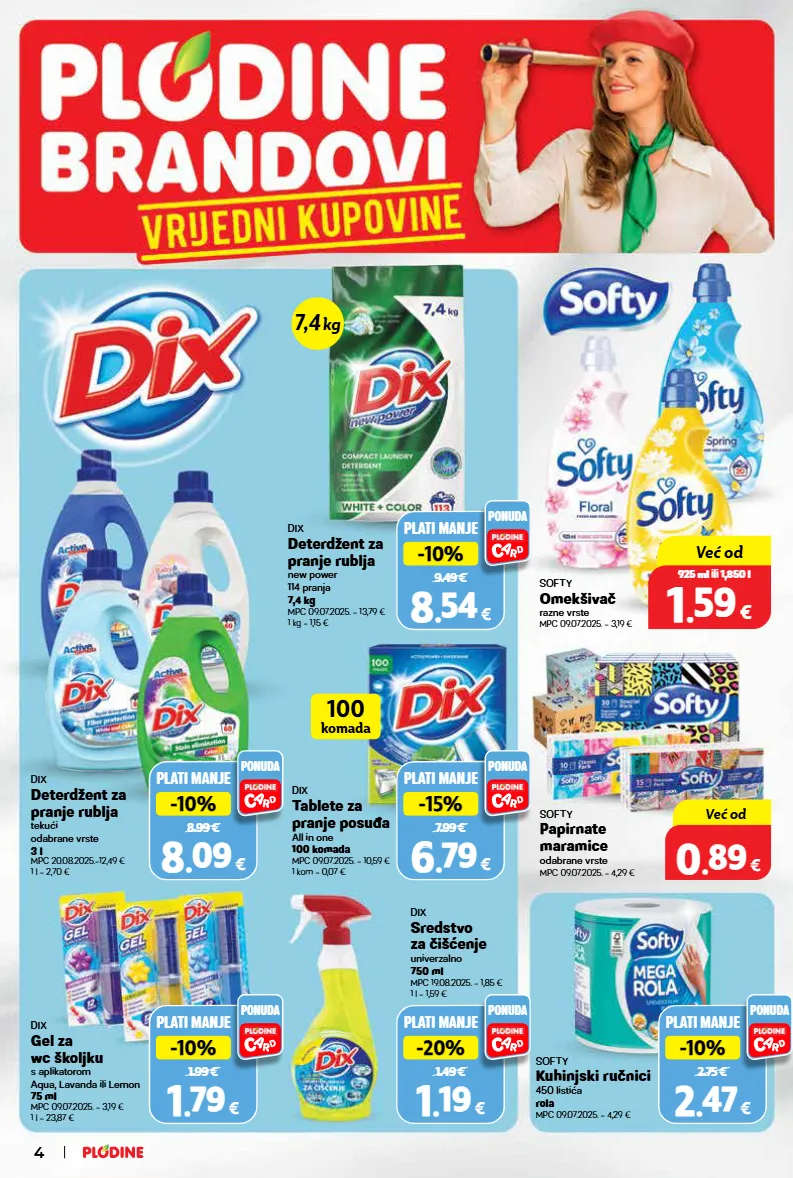 hit cijena! super prilika! samo u plodinama 0% 0% 0.00 € top cijena! već od 1 1 . . 59 59 € 925 ml ili 1,850 l softy omekšivač razne vrste mpc 09.07.2025. = 3,19 € hit cijena! super prilika! samo u plodinama 0% 0% 0.00 € top cijena! već od 0 0 . . 89 89 € softy papirnate maramice odabrane vrste mpc 09.07.2025. = 4,29 € softy kuhinjski ručnici 450 listića rola mpc 09.07.2025. = 4,29 € dix sredstvo za čišćenje univerzalno 750 ml mpc 19.08.2025. = 1,85 € 1 l = 1,59 € dix tablete za pranje posuđa all in one 100 komada mpc 09.07.2025. = 10,59 € 1 kom = 0,07 € dix gel za wc školjku s aplikatorom aqua, lavanda ili lemon 75 ml mpc 09.07.2025. = 3,19 € 1 l = 23,87 € dix deterdžent za pranje rublja tekući odabrane vrste 3 l mpc 20.08.2025.=12,49 € 1 l = 2,70 € dix deterdžent za pranje rublja new power 114 pranja 7,4 kg mpc 09.07.2025. = 13,79 € 1 kg = 1,15 € plati manje 9.49 € -10% -10% 8 8 . . 54 54 € ponuda plati manje 7.99 € -15% -15% 6 6 . . 79 79 € ponuda plati manje 1.49 € -20% -20% 1 1 . . 19 19 € ponuda plati manje 8.99 € -10% -10% 8 8 . . 09 09 € ponuda plati manje 1.99 € -10% -10% 1 1 . . 79 79 € ponuda plati manje 2.75 € -10% -10% 2 2 . . 47 47 € ponuda 7,4 kg komada 100 4