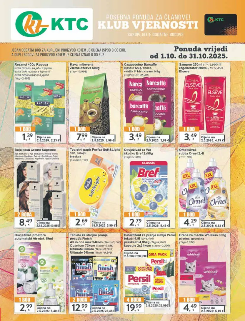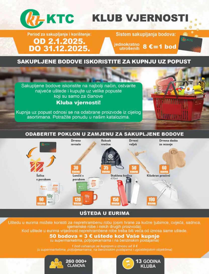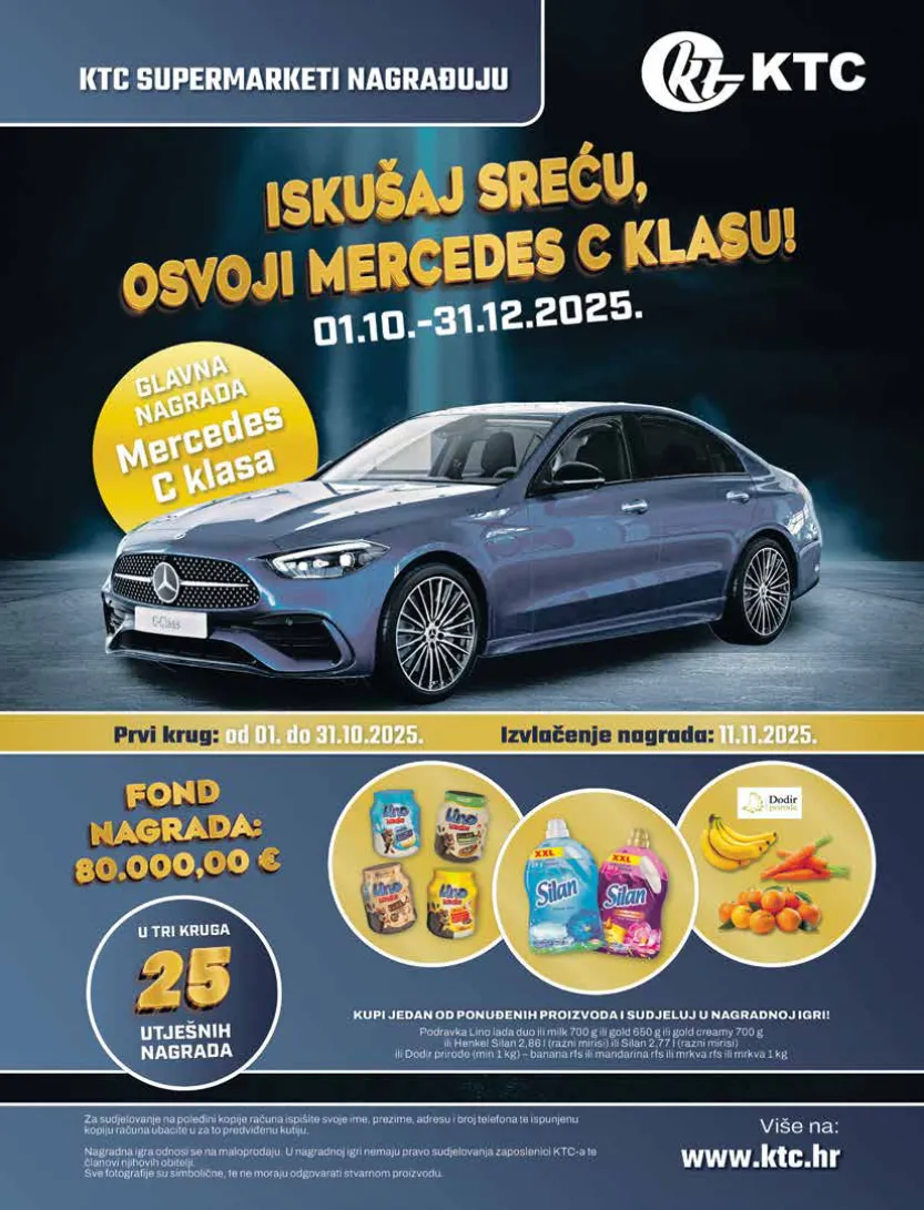naš katalog proizvoda izrađen je na 100% recikliranom papiru. radno vrijeme robnih centara: pon.-sub..: 7 - 21 h ; nedjeljama, praznicima i blagdanima : ne radimo www.ktc.hr info@ktc.hr 42 / 2025 15. 10. - 21. 10. 2025. od srijede do utorka cijena na 2. 5. 2025: 3,14 € cijena na 2. 5. 2025: 6,99 € cijena na 2. 5. 2025: 17,52 € cijena na 2. 5. 2025: 0,74 € ponuda 15. 10. - 18. 10. pile bez iznutrica rfs pg orehovec svježe (€ / kg) birajte mudro! 2 , 70 € vino muškat ottonel pop art 0,75 l puklavec family (1 l =5,32 €) -34% 6,09 € 3 , 99 € poklon paket jagermeister 0,7 l + 2 čaše brašno oštro 1 kg birajte mudro! 0 , 62 € cijena niža od ograničene! 17,99 € 15 , 99 € glavna nagrada mercedes c klasa 01.10.-31.12.2025. više na stranici: 27