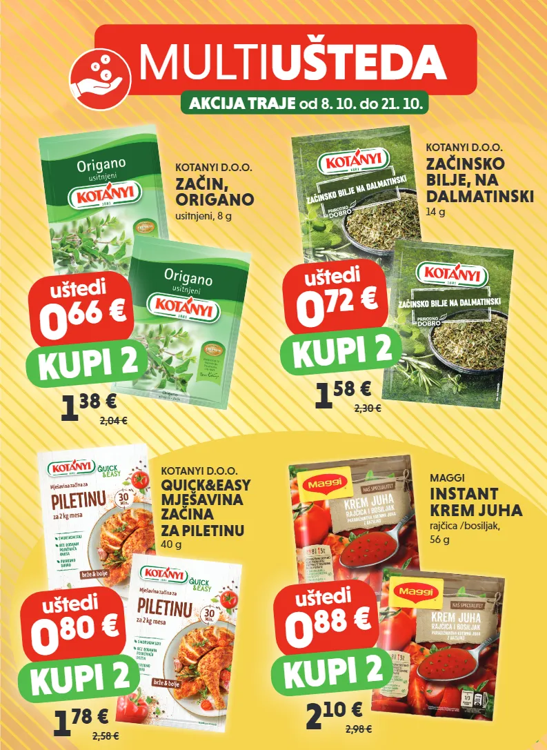 13 kotanyi d.o.o. quick&easy mješavina začina za piletinu 40 g kotanyi d.o.o. začinsko bilje, na dalmatinski 14 g kotanyi d.o.o. začin, origano usitnjeni, 8 g multi ušteda akcija traje od 8. 10. do 21. 10. € € € 2,04 € 1 38 € uštedi 0 66 € kupi 2 2,30 € 1 58 € uštedi 0 72 € kupi 2 2,58 € 1 78 € uštedi 0 80 € kupi 2 maggi instant krem juha rajčica /bosiljak, 56 g 2,98 € 2 10 € uštedi 0 88 € kupi 2