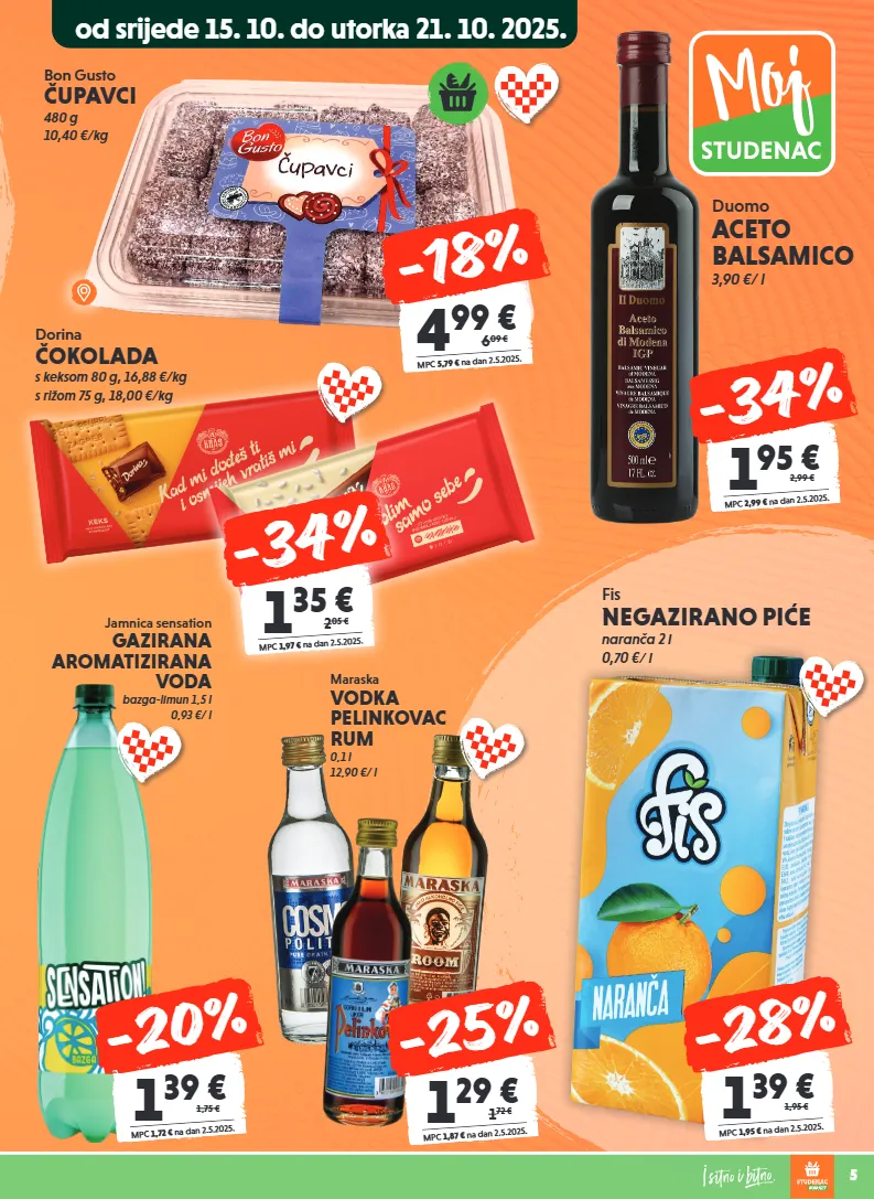 4 99 € mpc 5,79 € na dan 2.5.2025. 6 09 € -18% bon gusto čupavci 480 g 10,40 €/kg 1 39 € mpc 1,95 € na dan 2.5.2025. 1,95 € -28% fis negazirano piće naranča 2 l 0,70 €/ l 5 maraska vodka pelinkovac rum 0,1 l 12,90 €/ l 1 29 € mpc 1,87 € na dan 2.5.2025. 1 72 € -25% 1 95 € mpc 2,99 € na dan 2.5.2025. 2,99 € -34% duomo aceto balsamico 3,90 €/ l 1 39 € mpc 1,72 € na dan 2.5.2025. 1,75 € -20% jamnica sensation gazirana aromatizirana voda bazga-limun 1,5 l 0,93 €/ l 1 35 € mpc 1,97 € na dan 2.5.2025. 2 05 € -34% dorina čokolada s keksom 80 g, 16,88 €/kg s rižom 75 g, 18,00 €/kg od srijede 15. 10. do utorka 21. 10. 2025.