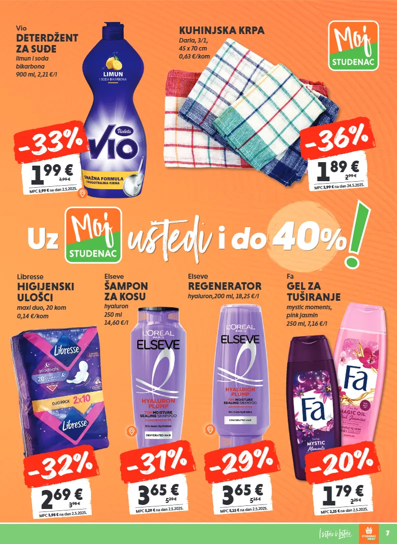 uz i do 40 % uštedi elseve šampon za kosu hyaluron 250 ml 14,60 €/l elseve regenerator hyaluron,200 ml, 18,25 €/l 3 65 € mpc 5,29 € na dan 2.5.2025. 5 29 € -31% 3 65 € mpc 5,15 € na dan 2.5.2025. 5 15 € -29% 7 1 99 € mpc 2,99 € na dan 2.5.2025. 2,99 € -33% vio deterdžent za suđe limun i soda bikarbona 900 ml, 2,21 €/l 1 89 € mpc 2,99 € na dan 24.5.2025. 2 99 € -36% kuhinjska krpa daria, 3/1, 45 x 70 cm 0,63 €/kom 1 79 € mpc 2,25 € na dan 2.5.2025. 2 25 € -20% fa gel za tuširanje mystic moments, pink jasmin 250 ml, 7,16 €/l 2 69 € mpc 3,98 € na dan 2.5.2025. 3 98 € -32% libresse higijenski ulošci maxi duo, 20 kom 0,14 €/kom