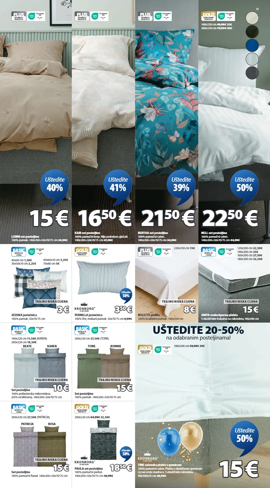 11 9 7 6 - 1 4 6 0 1 d t i plus udobnost i kvaliteta lonni set posteljine 100% pamuk. 140x200+50x70/75 cm 24,99€ 15 15 € € uštedite 40% 9 7 6 - 1 4 6 0 1 d t i plus udobnost i kvaliteta kari set posteljine 100% pamučni krep. nije potrebno glačati. 140x200+50x70/75 cm 27,99€ 16 16 50 50 € € uštedite 41% 9 7 6 - 1 4 6 0 1 d t i plus udobnost i kvaliteta bertha set posteljine 100% pamučni saten. 140x200+50x70/75 cm 34,99€ 21 21 50 50 € € uštedite 39% 9 7 6 - 1 4 6 0 1 d t i gold ekskluzivna kvaliteta nell set posteljine 100% pamučni saten. 140x200+50x70/75 cm 44,99€ 140x220 cm 49,99€ 25€ 200x220 cm 79,99€ 40€ 22 22 50 50 € € uštedite 50% uštedite 20-50% na odabranim posteljinama! 9 7 6 - 1 4 6 0 1 d t i gold ekskluzivna kvaliteta tine satenska plahta s gumicom 100% pamučni saten. plahta s elastičnom gumicom za sve vrste madraca. s elastičnim rubovima. 90x200x35 cm 29,99€ 180x200 cm 59,99€ 30€ 15 15 € € uštedite 50% 9 7 6 - 1 4 6 0 1 d t i basic najbolja cijena jessika jastučnica 100% pamuk. 50x70/75 cm 40x40 cm 1,50€ 30x50x10 cm 2,25€ 3 3 € € trajno niska cijena 40x60x10 cm 3,25€ 70x80 cm 5€ 9 7 6 - 1 4 6 0 1 d t i gold ekskluzivna kvaliteta pernilla jastučnica 100% fini, mekani pamuk. 50x70/75 cm 6,99€ 3 3 50 50 € € uštedite 50% 9 7 6 - 1 4 6 0 1 d t i plus udobnost i kvaliteta bolette plahta 100% kvalitetni pamuk. 140x250 cm 220x250 cm 15€ 8 8 € € trajno niska cijena 9 7 6 - 1 4 6 0 1 d t i basic najbolja cijena anita vodootporna plahta s elastičnim trakama na rubovima. 90x200 cm 120x200 cm 22,50€ 140x200 cm 25€ 160x200 cm 27,50€ 180x200 cm 32,50€ 15 15 € € trajno niska cijena 9 7 6 - 1 4 6 0 1 d t i basic najbolja cijena set posteljine 100% poliesterska mikrovlakna (50% reciklirana). 140x200+50x70/75 cm 140x220 cm 11,50€ (karen) 200x220 cm 18,50€ 10 10 € € trajno niska cijena beate karen 9 7 6 - 1 4 6 0 1 d t i basic najbolja cijena set posteljine 100% pamuk. 140x200+50x70/75 cm 200x220 cm 27,50€ (tone) 15 15 € € trajno niska cijena tone bonnie 9 7 6 - 1 4 6 0 1 d t i basic najbolja cijena set posteljine 100% pamučni flanel. 140x200+50x70/75 cm 200x220 cm 27,50€ (patricia) 15 15 € € trajno niska cijena patricia rosa 9 7 6 - 1 4 6 0 1 d t i gold ekskluzivna kvaliteta paula set posteljine 100% pamučni perkal. 140x200+50x70/75 cm 36,99€ 200x220 cm 64,99€ 32,50€ 18 18 50 50 € € uštedite 50% 7397680 1839680 1846880 7391580 7391780 7391680 7390580 1845580 1832580 1425001 1806600 1065442 1439001 1424400 1821880 1822280 1831480 1845380 7395280 7399180 1843680