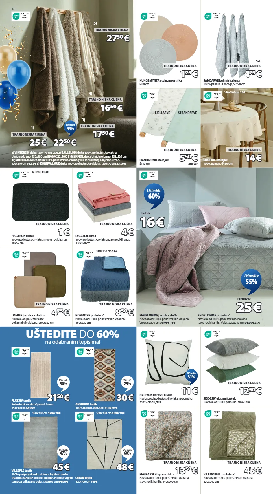 12 9 7 6 - 1 4 6 0 1 d t i 1) vintereik deka 130x170 cm 25€ 2) ballblom deka 100% poliesterska vlakna. umjetno krzno. 130x180 cm 39,99€ 22,50€ 3) myrfiol deka umjetno krzno. 135x195 cm 17,50€ 4) kalklok deka 100% poliesterska vlakna (50% reciklirana). umjetno krzno. 130x170 cm 16,50€ 5) kornvalmue deka 100% poliesterska vlakna. 130x170 cm 27,50€ 1) 25 25 € € trajno niska cijena 2) 22 22 50 50 € € uštedite 44% 3) 17 17 50 50 € € trajno niska cijena 4) 16 16 50 50 € € trajno niska cijena 5) 27 27 50 50 € € trajno niska cijena 9 7 6 - 1 4 6 0 1 d t i engblomme prekrivač navlaka od 100% poliesterskih vlakana (50% recikliranih). velur. 220x240 cm 54,99€ 25€ 25 25 € € prekrivač uštedite 55% engblomme jastuk za leđa navlaka od 100% poliesterskih vlakana. velur. 60x90 cm 39,99€ 16€ 16 16 € € jastuk uštedite 60% uštedite do 60% na odabranim tepisima! 9 7 6 - 1 4 6 0 1 d t i flatsiv tepih poliesterska vlakna/pamuk/vuna. 65x140 cm 42,99€ 21 21 50 50 € € uštedite 50% 9 7 6 - 1 4 6 0 1 d t i avenbok tepih 100% pamuk. 80x200 cm 39,99€ 30 30 € € uštedite 25% 9 7 6 - 1 4 6 0 1 d t i villeple tepih 100% polipropilensko vlakno. tepih se može rezati na različite veličine i oblike. ponuda vrijedi samo za prikazanu boju. 130x193 cm 84,99€ 160x230 cm 129€ 70€ 45 45 € € uštedite 47% 9 7 6 - 1 4 6 0 1 d t i odon tepih 135x190 cm 119€ 160x230 cm 139€ 70€ 48 48 € € uštedite 60% 9 7 6 - 1 4 6 0 1 d t i kungsmynta stolna prostirka ø38 cm 1 1 25 25 € € trajno niska cijena 9 7 6 - 1 4 6 0 1 d t i sandarve kuhinjska krpa 100% pamuk. 3 kom/p, 50x70 cm 4 4 75 75 € € set trajno niska cijena 9 7 6 - 1 4 6 0 1 d t i plastificirani stolnjak š140 cm /metar 5 5 50 50 € € trajno niska cijena fjellarve strandarve 9 7 6 - 1 4 6 0 1 d t i engfiol stolnjak 100% pamuk. ø160 cm 140x240 cm 15€ 14 14 € € trajno niska cijena 9 7 6 - 1 4 6 0 1 d t i hagtron otirač 100% poliesterska vlakna (100% reciklirana). 38x57 cm 60x80 cm 3€ 1 1 € € trajno niska cijena 9 7 6 - 1 4 6 0 1 d t i daglilje deka 100% poliesterska vlakna (25% reciklirana). 130x170 cm 4 4 € € trajno niska cijena 9 7 6 - 1 4 6 0 1 d t i lomme jastuk za stolice navlaka od poliesterskih/ poliamidnih vlakana. 38x38x2 cm 4 4 75 75 € € trajno niska cijena 9 7 6 - 1 4 6 0 1 d t i rosentre prekrivač navlaka od 100% poliesterskih vlakana. 160x220 cm 240x260 cm 14€ 8 8 50 50 € € trajno niska cijena 9 7 6 - 1 4 6 0 1 d t i hvitveis ukrasni jastuk navlaka od poliesterskih vlakana/pamuka. 45x45 cm 15,99€ 11 11 € € uštedite 31% 9 7 6 - 1 4 6 0 1 d t i skogsiv ukrasni jastuk navlaka od 100% pamuka. 40x60 cm 12 12 50 50 € € trajno niska cijena 9 7 6 - 1 4 6 0 1 d t i engkarse štepana deka navlaka od 100% poliesterskih vlakana (50% recikliranih). 140x200 cm 13 13 50 50 € € trajno niska cijena 9 7 6 - 1 4 6 0 1 d t i villmorell prekrivač navlaka od 100% poliesterskih vlakana. 220x240 cm 45 45 € € trajno niska cijena 4542826 4543100 4538517 4540444 4544100 4614842 4615018 6861442 6884718 6511744 6517200 5802143 6510574 1721010 1721045 1761842 2415690 5700102 5700366 1764944 6502542 4529701 6863144 4614742 4614436 6877501 6866666 4543900 4616166