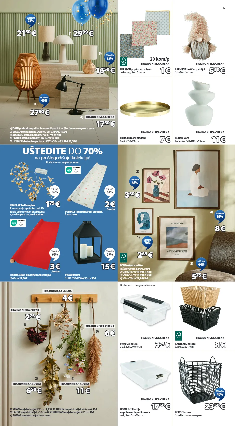 13 1) dani podna lampa bambus/eukalitpus/ratan. ø33xv54 cm 46,99€ 27,50€ 2) viggo stolna lampa ø21xv47 cm 27,99€ 21,50€ 3) markus stolna lampa ø27xv35 cm 29,99€ 4) patrik stolna lampa ø14xv45 cm 17,50€ 5) helmer stolna lampa ratan. ø17xv32 cm 21,99€ 16,50€ 5) 16 16 50 50 € € uštedite 25% 4) 17 17 50 50 € € trajno niska cijena 3) 29 29 99 99 € € 2) 21 21 50 50 € € uštedite 23% 1) 27 27 50 50 € € uštedite 40% uštedite do 70% na prošlogodišnju kolekciju! količine su ograničene. rimfaxe led lampice za unutarnju upotrebu. 20 led. toplo bijelo svjetlo. bez baterija. 1,9 m lampice + 0,3 m kabel 4€ 1 1 75 75 € € uštedite 56% 9 7 6 - 1 4 6 0 1 d t i eudialyt plastificirani stolnjak š140 cm 6€ /metar 2 2 € € uštedite 67% 9 7 6 - 1 4 6 0 1 d t i hjertegras plastificirani stolnjak š140 cm 11,50€ 3 3 € € uštedite 70% /metar vidar fenjer s led. š30xd30xv50 cm 35€ 15 15 € € uštedite 57% www.fsc.org ® ® fsc n001715 tord okvir za slike 1) š21xv30 cm 8,99€ 2,65€ 2) š30xv40 cm 10,99€ 3,50€ 3) š40xv50 cm 15,99€ 5,75€ 4) š50xv70 cm 22,99€ 8€ 1) 2 2 65 65 € € uštedite 70% 2) 3 3 50 50 € € uštedite 68% 3) 5 5 75 75 € € uštedite 64% 4) 8 8 € € uštedite 65% 1) stian umjetni cvijet v36 cm 2,75€ 2) audun umjetni cvijet v69 cm 6,50€ 3) laust umjetni cvijet v38 cm 4€ 4) kristian umjetni cvijet v60 cm 11€ 5) tomas umjetni cvijet v95 cm 6€ 5) 6 6 € € trajno niska cijena 4) 11 11 € € trajno niska cijena 3) 4 4 € € trajno niska cijena 2) 6 6 50 50 € € trajno niska cijena 1) 2 2 75 75 € € trajno niska cijena www.fsc.org ® ® fsc n001715 lersson papirnate salvete 20 kom/p, š33xd33 cm 1 1 € € 20 kom/p trajno niska cijena larvikit božićni patuljak š13xd20xv41 cm 5 5 50 50 € € trajno niska cijena frits ukrasni pladanj čelik. ø30xv2 cm 7 7 € € trajno niska cijena benny vaza keramika. š11xd16xv25 cm 11 11 € € trajno niska cijena probox kutija 3 l, š20xd29xv9 cm dostupno i u drugim veličinama. 3 3 75 75 € € trajno niska cijena www.fsc.org ® ® fsc n001715 larsemil košara š23xd33xv17 cm 8 8 € € trajno niska cijena home box kutija za pohranu ispod kreveta 49 l, š56xd70xv19 cm 17 17 50 50 € € trajno niska cijena berge košara š37xd37xv39 cm 39,99€ 23 23 50 50 € € uštedite 40% 4912494 4911413 4912186 4912048 4912496 6121001 6131444 6094518 6120901 4912590 4912591 4912592 4912593 4911859 4912317 4912214 4912419 4912157 4900918 6112251 4912199 4912427 4922010 4912389 4912630 4910006 4911773