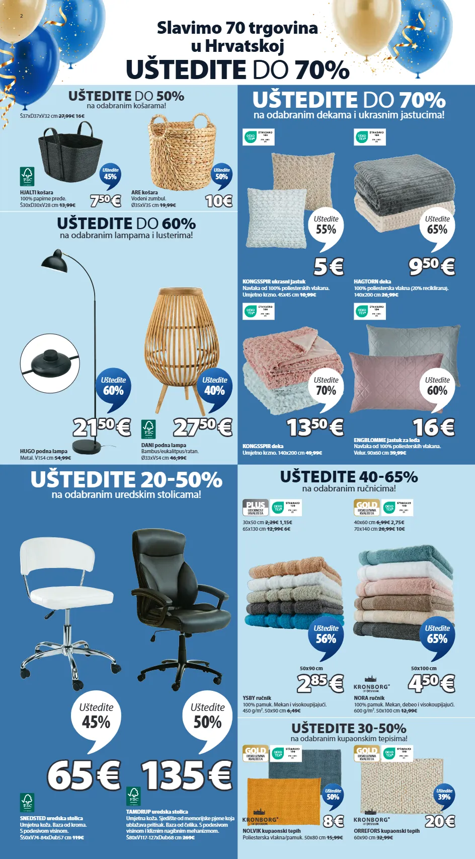 2 www.fsc.org ® ® fsc n001715 hjalti košara 100% papirne pređe. š30xd30xv28 cm 13,99€ š37xd37xv32 cm 27,99€ 16€ 7 7 50 50 € € uštedite 45% uštedite do 50% na odabranim košarama! uštedite 40-65% na odabranim ručnicima! uštedite 30-50% na odabranim kupaonskim tepisima! uštedite do 60% na odabranim lampama i lusterima! are košara vodeni zumbul. ø35xv35 cm 19,99€ 10 10 € € uštedite 50% uštedite do 70% na odabranim dekama i ukrasnim jastucima! 9 7 6 - 1 4 6 0 1 d t i kongsspir ukrasni jastuk navlaka od 100% poliesterskih vlakana. umjetno krzno. 45x45 cm 10,99€ 5 5 € € uštedite 55% 9 7 6 - 1 4 6 0 1 d t i hagtorn deka 100% poliesterska vlakna (20% reciklirana). 140x200 cm 26,99€ 9 9 50 50 € € uštedite 65% 9 7 6 - 1 4 6 0 1 d t i kongsspir deka umjetno krzno. 140x200 cm 49,99€ 13 13 50 50 € € uštedite 70% 9 7 6 - 1 4 6 0 1 d t i engblomme jastuk za leđa navlaka od 100% poliesterskih vlakana. velur. 90x60 cm 39,99€ 16 16 € € uštedite 60% hugo podna lampa metal. v154 cm 54,99€ 21 21 50 50 € € uštedite 60% www.fsc.org ® ® fsc n001715 dani podna lampa bambus/eukalitpus/ratan. ø33xv54 cm 46,99€ 27 27 50 50 € € uštedite 40% uštedite 20-50% na odabranim uredskim stolicama! www.fsc.org ® ® fsc n001715 snedsted uredska stolica umjetna koža. baza od kroma. s podesivom visinom. š50xv74-84xdub57 cm 119€ 65 65 € € uštedite 45% www.fsc.org ® ® fsc n001715 tamdrup uredska stolica umjetna koža. sjedište od memorijske pjene koja ublažava pritisak. baza od čelika. s podesivom visinom i kliznim nagibnim mehanizmom. š80xv117-127xdub68 cm 269€ 135 135 € € uštedite 50% ysby ručnik 100% pamuk. mekan i visokoupijajući. 450 g/m². 50x90 cm 6,49€ 9 7 6 - 1 4 6 0 1 d t i plus udobnost i kvaliteta 30x50 cm 2,29€ 1,15€ 65x130 cm 12,99€ 6€ 2 2 85 85 € € 50x90 cm uštedite 56% nora ručnik 100% pamuk. mekan, debeo i visokoupijajući. 600 g/m². 50x100 cm 12,99€ 9 7 6 - 1 4 6 0 1 d t i gold ekskluzivna kvaliteta 40x60 cm 6,99€ 2,75€ 70x140 cm 26,99€ 10€ 4 4 50 50 € € 50x100 cm uštedite 65% 9 7 6 - 1 4 6 0 1 d t i gold ekskluzivna kvaliteta nolvik kupaonski tepih poliesterska vlakna/pamuk. 50x80 cm 15,99€ 8 8 € € uštedite 50% 9 7 6 - 1 4 6 0 1 d t i gold ekskluzivna kvaliteta orrefors kupaonski tepih 60x90 cm 32,99€ 20 20 € € uštedite 39% slavimo 70 trgovina u hrvatskoj uštedite do 70% 4912631 4911295 6865342 6883244 4533607 4533642 4539042 4539119 6861442 6884718 4911898 4912496 3690320 3601257 2121601 2101601 2522505 2513842 2515100