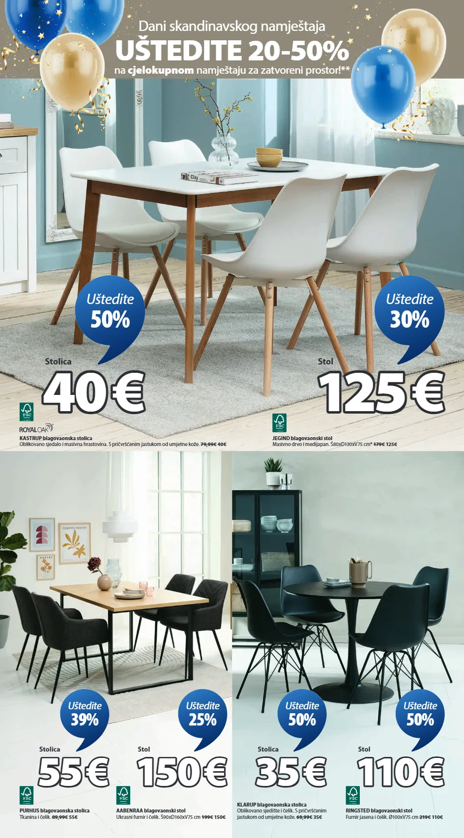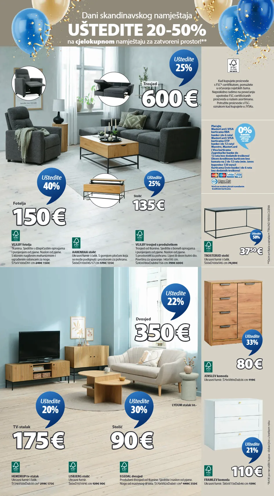 5 dani skandinavskog namještaja uštedite 20-50% na cjelokupnom namještaju za zatvoreni prostor!** www.fsc.org ® ® fsc n001715 vejlby fotelja tkanina. sjedište s džepičastim oprugama i punjenjem od pjene. naslon od pjene. s kliznim nagibnim mehanizmom i ugrađenim osloncem za noge. š75xv100xd91 cm 249€ 150€ 150 150 € € fotelja uštedite 40% www.fsc.org ® ® fsc n001715 aabenraa stolić ukrasni furnir i čelik. s gornjom pločom koja se može podignuti i prostorom za pohranu. š60xd110xv45/57 cm 179€ 135€ 135 135 € € stolić uštedite 25% www.fsc.org ® ® fsc n001715 vejlby trosjed s produžetkom trosjed od tkanine. sjedište s bonell oprugama i punjenjem od pjene. naslon od pjene. s prostorom za pohranu. lijevi ili desni kutni dio. površina za spavanje: 145x195 cm. š243xv86xdub86/156 cm 799€ 600€ 600 600 € € trosjed uštedite 25% www.fsc.org ® ® fsc n001715 hemdrup tv-stalak ukrasni furnir i čelik. š134xv50xdub38 cm* 219€ 175€ 175 175 € € tv-stalak uštedite 20% www.fsc.org ® ® fsc n001715 lisbjerg stolić ukrasni furnir. š60xd107xv45 cm 129€ 90€ 90 90 € € stolić uštedite 30% www.fsc.org ® ® fsc n001715 egedal dvosjed produženi dvosjed od tkanine. sjedište i naslon od pjene. noge od masivnog drveta. š170xv82xdub81 cm* 449€ 350€ 350 350 € € dvosjed uštedite 22% lydum stalak 50.- www.fsc.org ® ® fsc n001715 framlev komoda ukrasni furnir. š80xv73xdub46 cm 139€ 110 110 € € uštedite 21% www.fsc.org ® ® fsc n001715 trosterud stolić ukrasni furnir i čelik. š50xd100xv45 cm 74,99€ 37 37 50 50 € € uštedite 50% kad kupujete proizvode s fsc®-certifikatom, pomažete u očuvanju svjetskih šuma. neprekidno radimo na povećanju upotrebe fsc-certificiranih proizvoda u našem asortimanu. potražite proizvode s fsc- oznakom kad kupujete u jysku. 0% kamata mogućnost plaćanja na rate *kod nas možete plaćati navedenim kreditnim karticama plaćajte mastercard i visa karticama rba banke i do 6 rata! mastercard i visa karticama otp banke i do 12 rata! maestro, mastercard i visa karticama zagrebačke banke do 12 rata bez dodatnih troškova! diners kreditnom karticom bez kamata na 2 do 12 rata (min. iznos kupovine 130 eura)! karticama erste banke i do 6 rata bez dodatnih troškova! *artikl po narudžbi kupca - dobavljivo u kratkom roku **osim artikala s oznakom trajno niska cijena www.fsc.org ® ® fsc n001715 jenslev komoda ukrasni furnir. š79xv89xdub36 cm 119€ 80 80 € € uštedite 33% 3630067 3670088 3690380 3670024 3670052 3670069 3690442 3670484 3600605 3601024