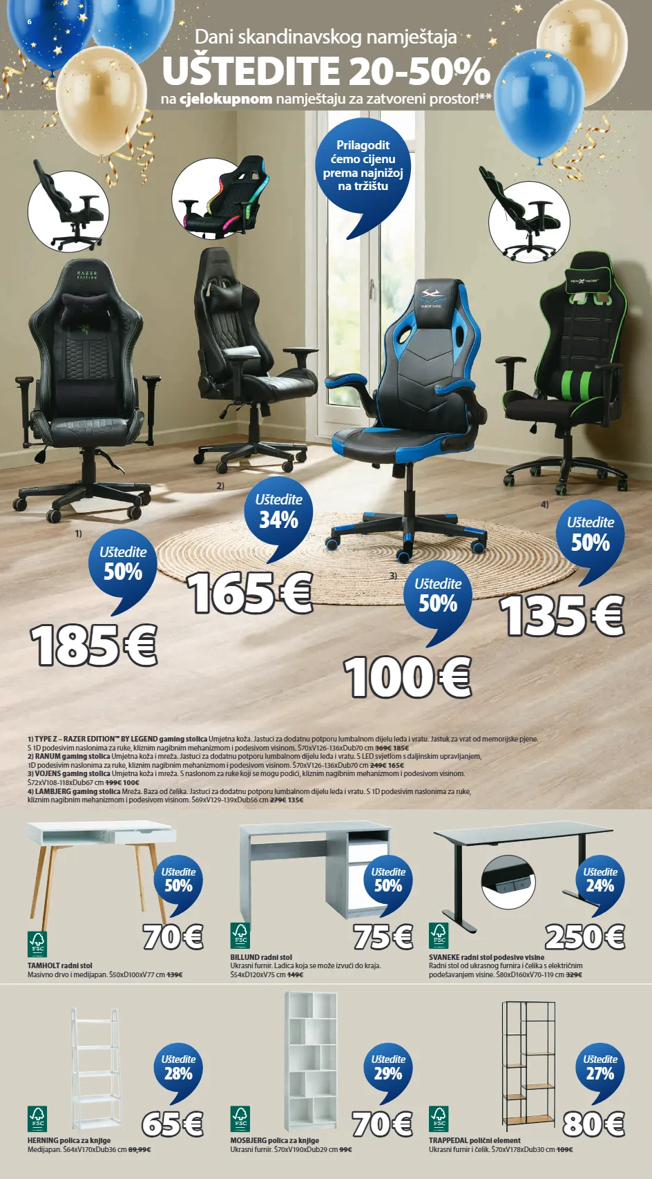 6 dani skandinavskog namještaja uštedite 20-50% na cjelokupnom namještaju za zatvoreni prostor!** 185 185 € € uštedite 50% 165 165 € € uštedite 34% 1) type z – razer edition™ by legend gaming stolica umjetna koža. jastuci za dodatnu potporu lumbalnom dijelu leđa i vratu. jastuk za vrat od memorijske pjene. s 1d podesivim naslonima za ruke, kliznim nagibnim mehanizmom i podesivom visinom. š70xv126-136xdub70 cm 369€ 185€ 2) ranum gaming stolica umjetna koža i mreža. jastuci za dodatnu potporu lumbalnom dijelu leđa i vratu. s led svjetlom s daljinskim upravljanjem, 1d podesivim naslonima za ruke, kliznim nagibnim mehanizmom i podesivom visinom. š70xv126-136xdub70 cm 249€ 165€ 3) vojens gaming stolica umjetna koža i mreža. s naslonom za ruke koji se mogu podići, kliznim nagibnim mehanizmom i podesivom visinom. š72xv108-118xdub67 cm 199€ 100€ 4) lambjerg gaming stolica mreža. baza od čelika. jastuci za dodatnu potporu lumbalnom dijelu leđa i vratu. s 1d podesivim naslonima za ruke, kliznim nagibnim mehanizmom i podesivom visinom. š69xv129-139xdub56 cm 279€ 135€ 135 135 € € uštedite 50% 100 100 € € uštedite 50% prilagodit ćemo cijenu prema najnižoj na tržištu www.fsc.org ® ® fsc n001715 herning polica za knjige medijapan. š64xv170xdub36 cm 89,99€ 65 65 € € uštedite 28% www.fsc.org ® ® fsc n001715 mosbjerg polica za knjige ukrasni furnir. š70xv190xdub29 cm 99€ 70 70 € € uštedite 29% www.fsc.org ® ® fsc n001715 trappedal polični element ukrasni furnir i čelik. š70xv178xdub30 cm 109€ 80 80 € € uštedite 27% www.fsc.org ® ® fsc n001715 tamholt radni stol masivno drvo i medijapan. š50xd100xv77 cm 139€ 70 70 € € uštedite 50% www.fsc.org ® ® fsc n001715 billund radni stol ukrasni furnir. ladica koja se može izvući do kraja. š54xd120xv75 cm 149€ 75 75 € € uštedite 50% www.fsc.org ® ® fsc n001715 svaneke radni stol podesive visine radni stol od ukrasnog furnira i čelika s električnim podešavanjem visine. š80xd160xv70-119 cm 329€ 250 250 € € uštedite 24% 1) 2) 3) 4) 3690256 3690385 3690234 3601050 3689801 3670200 3601018 3600632 3681949 3601339