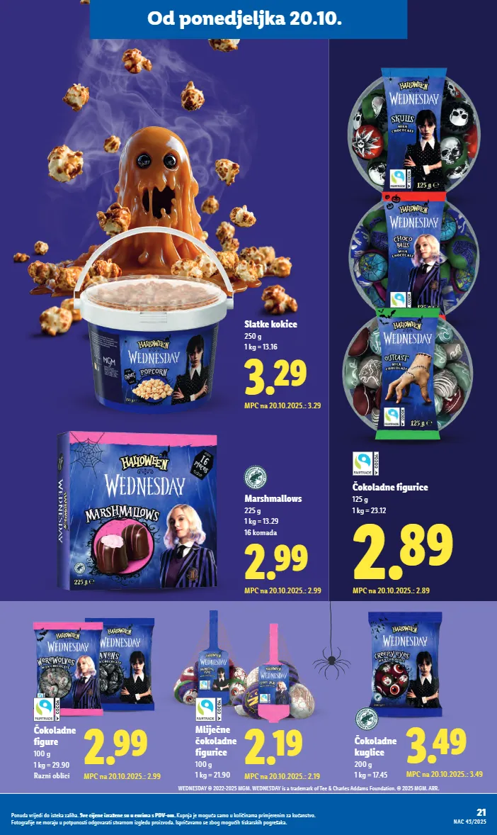 2.89 MPC na 20.10.2025.: 2.89 Čokoladne figurice 125 g 1 kg = 23.12 2.19 MPC na 20.10.2025.: 2.19 Mliječne čokoladne figurice 100 g 1 kg = 21.90 3.49 MPC na 20.10.2025.: 3.49 Čokoladne kuglice 200 g 1 kg = 17.45 2.99 MPC na 20.10.2025.: 2.99 Čokoladne figure 100 g 1 kg = 29.90 Razni oblici 3.29 MPC na 20.10.2025.: 3.29 Slatke kokice 250 g 1 kg = 13.16 2.99 MPC na 20.10.2025.: 2.99 Marshmallows 225 g 1 kg = 13.29 16 komada WEDNESDAY © 2022-2025 MGM. WEDNESDAY is a trademark of Tee & Charles Addams Foundation. © 2025 MGM. ARR. 21 NAC 43/2025 Ponuda vrijedi do isteka zaliha. Sve cijene izražene su u eurima s PDV-om. Kupnja je moguća samo u količinama primjerenim za kućanstvo. Fotografije ne moraju u potpunosti odgovarati stvarnom izgledu proizvoda. Ispričavamo se zbog mogućih tiskarskih pogrešaka. Od ponedjeljka 20.10.