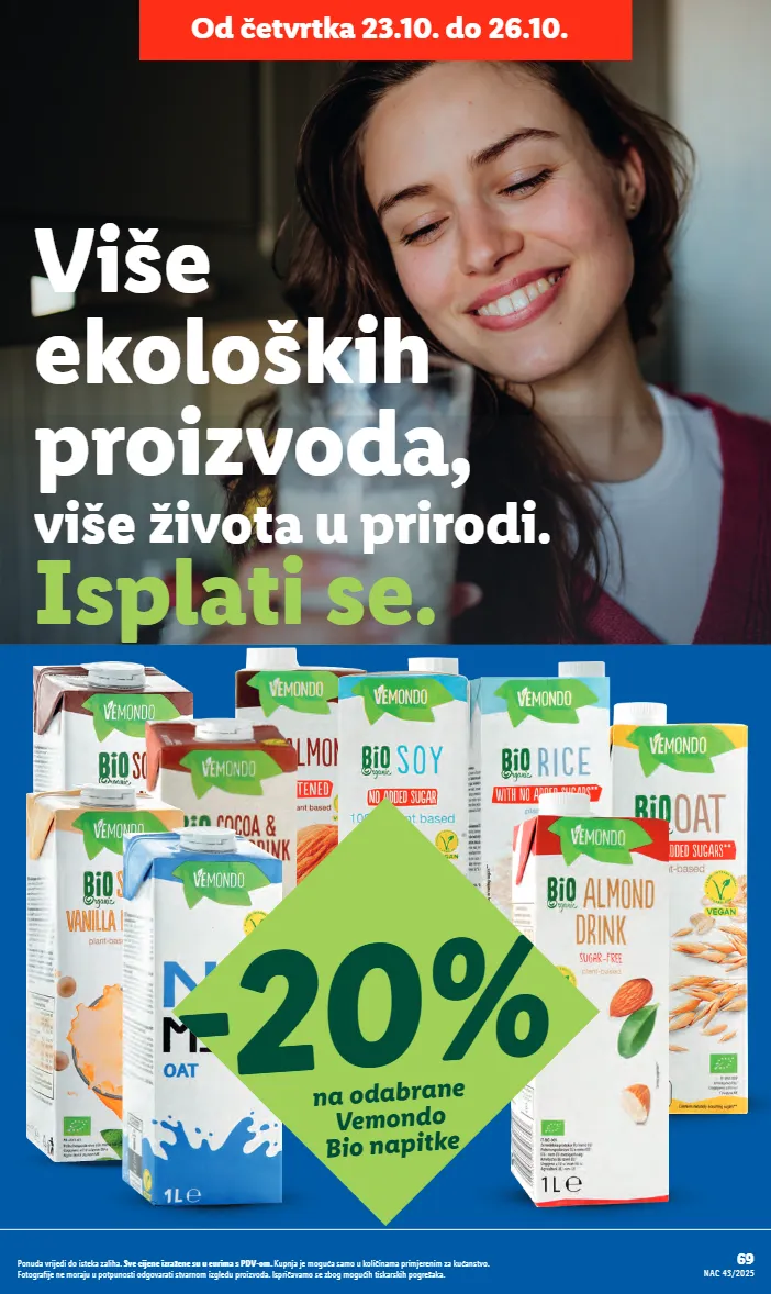 Više ekoloških proizvoda, više života u prirodi. Isplati se. -20% na odabrane Vemondo Bio napitke 69 NAC 43/2025 Ponuda vrijedi do isteka zaliha. Sve cijene izražene su u eurima s PDV-om. Kupnja je moguća samo u količinama primjerenim za kućanstvo. Fotografije ne moraju u potpunosti odgovarati stvarnom izgledu proizvoda. Ispričavamo se zbog mogućih tiskarskih pogrešaka. Od četvrtka 23.10. do 26.10.