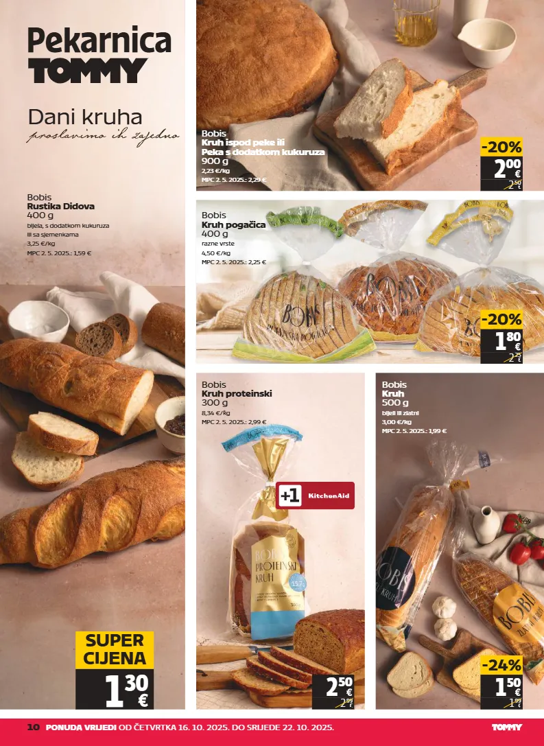 10 ponuda vrijedi od četvrtka 16. 10. 2025. do srijede 22. 10. 2025. 2 00 2 50 -20% 1 80 2 25 -20% pekarnica dani kruha bobis kruh pogačica 400 g razne vrste 4,50 €/kg mpc 2. 5. 2025.: 2,25 € bobis kruh proteinski 300 g 8,34 €/kg mpc 2. 5. 2025.: 2,99 € 2 50 2 99 bobis kruh 500 g bijeli ili zlatni 3,00 €/kg mpc 2. 5. 2025.: 1,99 € 1 50 1 99 -24% bobis rustika didova 400 g bijela, s dodatkom kukuruza ili sa sjemenkama 3,25 €/kg mpc 2. 5. 2025.: 1,59 € 1 30 super cijena bobis kruh ispod peke ili peka s dodatkom kukuruza 900 g 2,23 €/kg mpc 2. 5. 2025.: 2,29 €