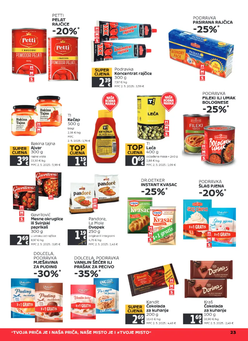 “tvoja priča je i naša priča, naše misto je i #tvoje misto“ 19 dukat kiselo vrhnje 900 g 20% m.m. 3,99 €/kg mpc 2. 5. 2025.: 4,99 € 3 59 super cijena meggle vrhnje za kuhanje 500 g 20% m.m. 5,78 €/kg mpc 2. 5. 2025.: 3,69 € 2 89 ‘z bregov, vindija svježi posni sir 250 g protein 4,76 €/kg mpc 2. 5. 2025.: 1,69 € 1 19 super cijena president zrnati sir 200 g razne vrste 10,95 €/kg mpc 2. 5. 2025.: 2,49 € ili 2,69 € 2 19 salakis, president sir slani 300 g 14,97 €/kg mpc 2. 5. 2025.: 5,99 € 4 49 meggle sir mozzarella 125 g 11,12 €/kg mpc 2. 5. 2025.: 2,29 € 1 39 super cijena president mladi kajmak 250 g 15,96 €/kg mpc 2. 5. 2025.: 4,49 € 3 99 thomy umak 80 g razne vrste 9,88 €/kg mpc 2. 5. 2025.: 1,29 € 0 79 super cijena ‘z bregov, vindija kiselo vrhnje 200 g 12% m.m. 3,95 €/kg mpc 2. 5. 2025.: 0,94 € 0 79 kravica kraljica, belje mileram 300 g 22% m.m 5,97 €/kg mpc 2. 5. 2025.: 2,29 € 1 79 sir iz pijata 700 g 11,42 €/kg mpc 29. 7. 2025.: 10,49 € 7 99 bakina kuhinja namaz margarita 250 g 3,96 €/kg mpc 2. 5. 2025.: 1,09 € 0 99 super cijena rana lazanje 350 g bolognese 8,26 €/kg mpc 2. 5. 2025.: 3,99 € 2 89 dukatela, dukat mlječni mamaz 250 g 9,16 €/kg mpc 2. 5. 2025.: 2,69 € 2 29