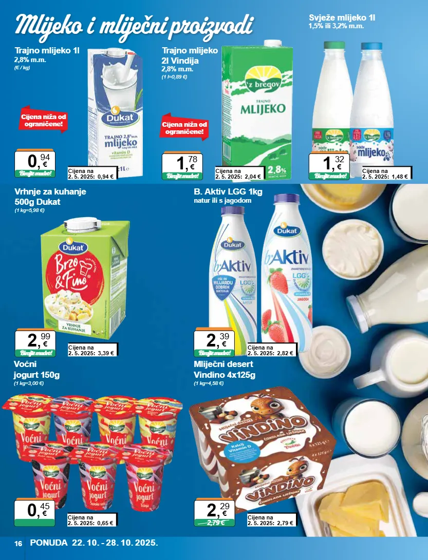 cijena na 2. 5. 2025: 0,94 € cijena na 2. 5. 2025: 2,82 € cijena na 2. 5. 2025: 3,39 € cijena na 2. 5. 2025: 2,04 € cijena na 2. 5. 2025: 1,48 € cijena na 2. 5. 2025: 0,65 € cijena na 2. 5. 2025: 2,79 € cijena niža od ograničene! trajno mlijeko 1l 2,8% m.m. (€ / kg) birajte mudro! 0 , 94 € b. aktiv lgg 1kg natur ili s jagodom birajte mudro! 2 , 39 € vrhnje za kuhanje 500g dukat (1 kg=5,98 €) trajno mlijeko 2l vindija 2,8% m.m. (1 l=0,89 €) cijena niža od ograničene! birajte mudro! 1 , 78 € svježe mlijeko 1l 1,5% ili 3,2% m.m. birajte mudro! 1 , 32 € voćni jogurt 150g (1 kg=3,00 €) 0 , 45 € mliječni desert vindino 4x125g (1 kg=4,58 €) 2,79 € 2 , 29 € 2 , 99 € birajte mudro! 16 mlijeko i mliječni proizvodi ponuda 22. 10. - 28. 10. 2025.