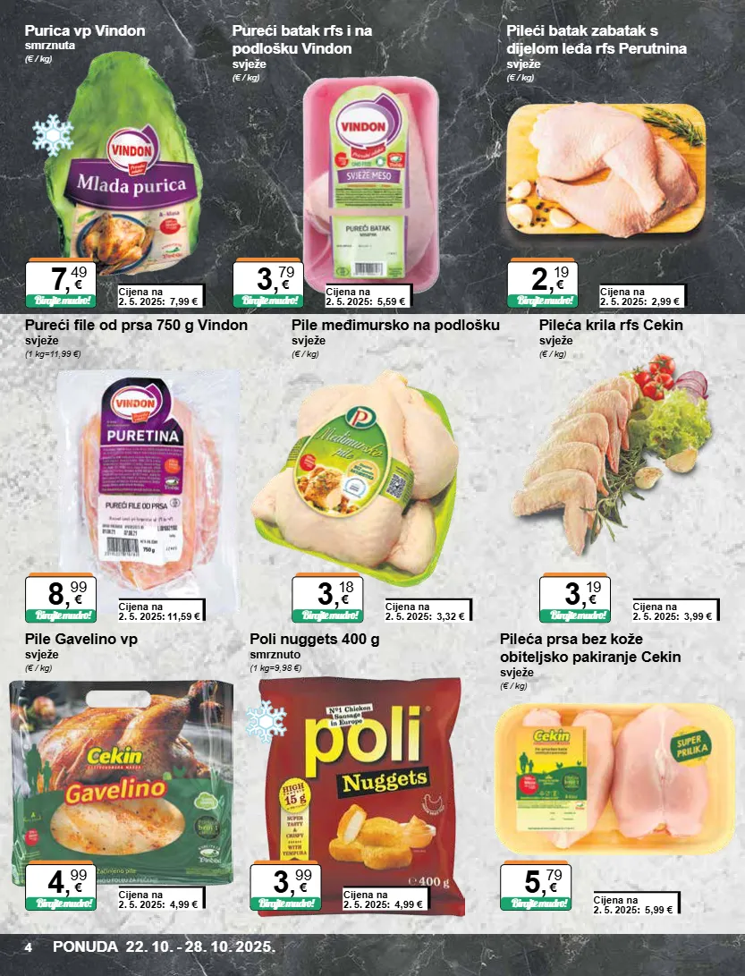 cijena na 2. 5. 2025: 7,99 € cijena na 2. 5. 2025: 5,59 € cijena na 2. 5. 2025: 4,99 € cijena na 2. 5. 2025: 3,99 € cijena na 2. 5. 2025: 5,99 € cijena na 2. 5. 2025: 11,59 € cijena na 2. 5. 2025: 3,32 € cijena na 2. 5. 2025: 2,99 € cijena na 2. 5. 2025: 4,99 € purica vp vindon smrznuta (€ / kg) birajte mudro! 7 , 49 € pureći batak rfs i na podlošku vindon svježe (€ / kg) birajte mudro! 3 , 79 € pile gavelino vp svježe (€ / kg) birajte mudro! 4 , 99 € pileća krila rfs cekin svježe (€ / kg) birajte mudro! 3 , 19 € pileća prsa bez kože obiteljsko pakiranje cekin svježe (€ / kg) birajte mudro! 5 , 79 € pureći file od prsa 750 g vindon svježe (1 kg=11,99 €) birajte mudro! 8 , 99 € pile međimursko na podlošku svježe (€ / kg) birajte mudro! 3 , 18 € pileći batak zabatak s dijelom leđa rfs perutnina svježe (€ / kg) birajte mudro! 2 , 19 € poli nuggets 400 g smrznuto (1 kg=9,98 €) birajte mudro! 3 , 99 € ponuda 22. 10. - 28. 10. 2025. 4