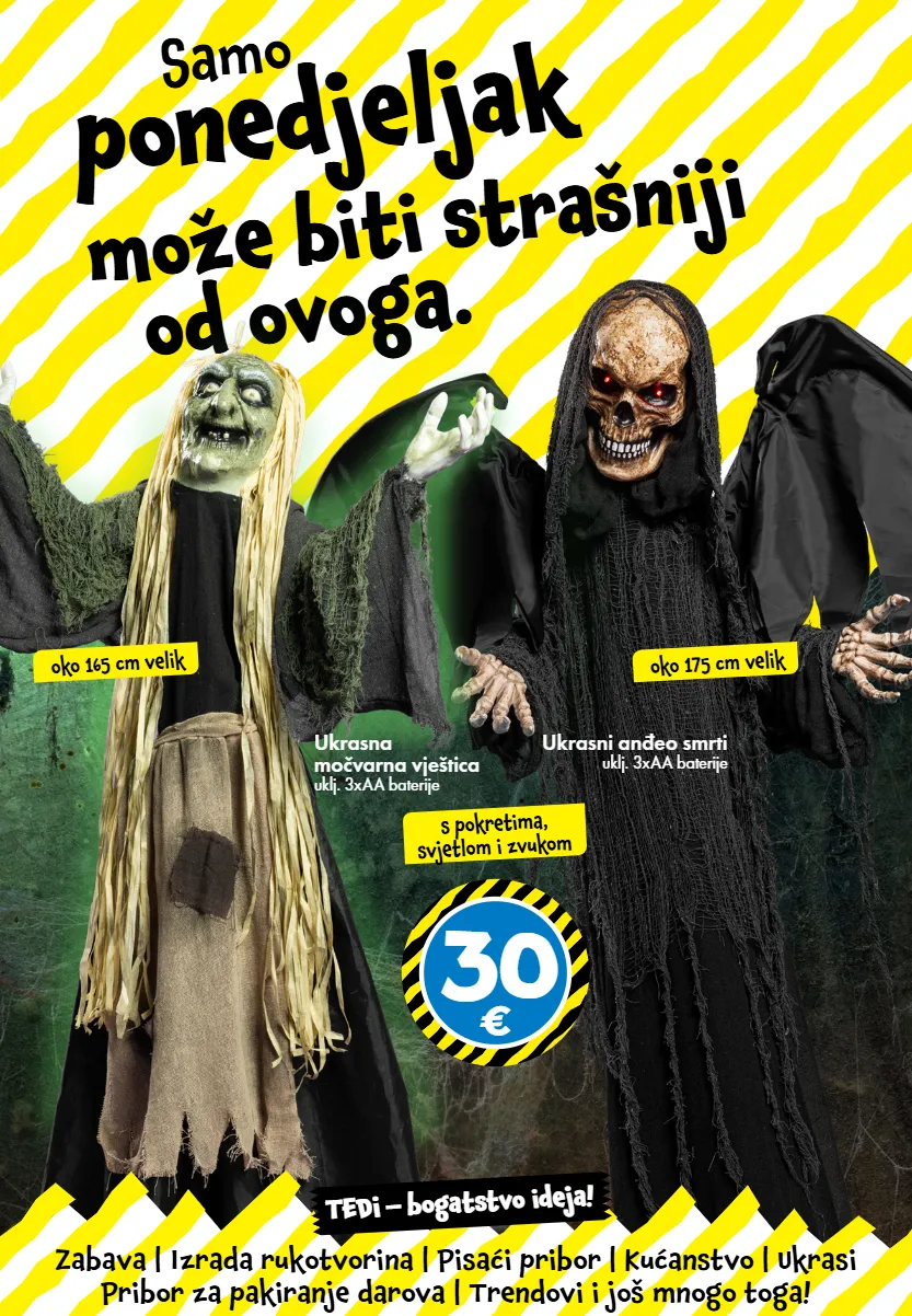samo može biti strašniji od ovoga. ponedjeljak ukrasni anđeo smrti uklj. 3xaa baterije 30 € ukrasna močvarna vještica uklj. 3xaa baterije s pokretima, svjetlom i zvukom oko 165 cm velik oko 175 cm velik tedi – bogatstvo ideja! zabava | izrada rukotvorina | pisaći pribor | kućanstvo | ukrasi pribor za pakiranje darova | trendovi i još mnogo toga!