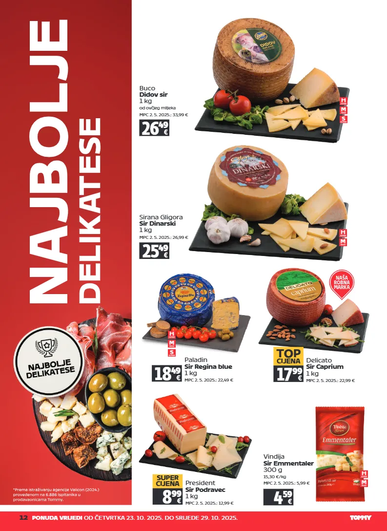 12 ponuda vrijedi od četvrtka 23. 10. 2025. do srijede 29. 10. 2025. sirana gligora sir dinarski 1 kg mpc 2. 5. 2025.: 26,99 € 25 49 delicato sir caprium 1 kg mpc 2. 5. 2025.: 22,99 € 17 99 top cijena president sir podravec 1 kg mpc 2. 5. 2025.: 12,99 € 8 99 super cijena vindija sir emmentaler 300 g 15,30 €/kg mpc 2. 5. 2025.: 5,99 € 4 59 buco didov sir 1 kg od ovčjeg mlijeka mpc 2. 5. 2025.: 33,99 € 26 49 paladin sir regina blue 1 kg mpc 2. 5. 2025.: 22,49 € 18 49