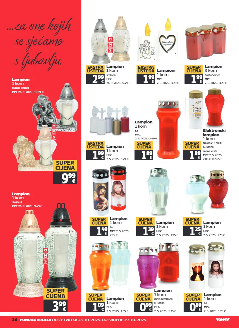 16 ponuda vrijedi od četvrtka 23. 10. 2025. do srijede 29. 10. 2025. lampion 1 kom k1 mpc 2. 5. 2025.: 1,25 € 0 89 super cijena lampion 1 kom k5 mpc 2. 5. 2025.: 2,15 € 1 49 super cijena elektronski lampion 1 kom trajanje: 120 ili 60 dana razne vrste mpc 2. 5. 2025.: 2,85 € ili 2,65 € 1 89 super cijena lampion 3 kom 0,66 €/kom mpc 2. 5. 2025.: 3,29 € 1 99 super cijena lampion 1 kom k3 mpc 2. 5. 2025.: 2,49 € 1 89 super cijena lampion 1 kom mpc 2. 5. 2025.: 3,29 € 1 99 ekstra ušteda lampioni 1 kom mpc 2. 5. 2025.: 3,29 € 1 99 ekstra ušteda lampion 1 kom stakleni mpc 26. 9. 2025.: 9,49 € lampion 1 kom mpc 2. 5. 2025.: 1,95 € 1 39 super cijena 3 99 super cijena lampion 1 kom statua anđeo mpc 26. 9. 2025.: 15,99 € lampion 1 kom stakleni mpc 26. 9. 2025.: 5,49 € 2 99 ekstra ušteda lampion 1 kom mpc 2. 5. 2025.: 1,79 € 1 25 super cijena lampion 1 kom mpc 2. 5. 2025.: 1,65 € 1 09 super cijena lampion 1 kom mala piramida ili kocka mpc 2. 5. 2025.: 1,35 € 0 99 super cijena 9 99 super cijena