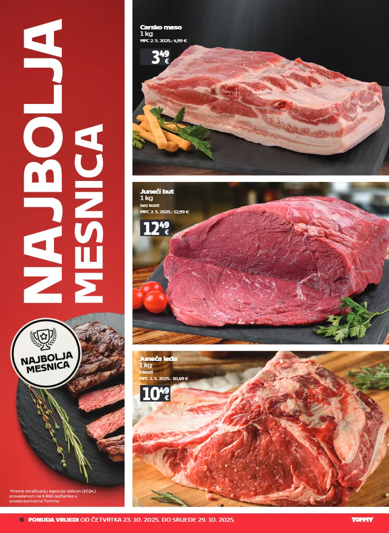6 ponuda vrijedi od četvrtka 23. 10. 2025. do srijede 29. 10. 2025. carsko meso 1 kg mpc 2. 5. 2025.: 4,99 € 3 49 juneći but 1 kg bez kosti mpc 2. 5. 2025.: 12,99 € 12 49 juneća leđa 1 kg s kosti mpc 2. 5. 2025.: 10,49 € 10 49
