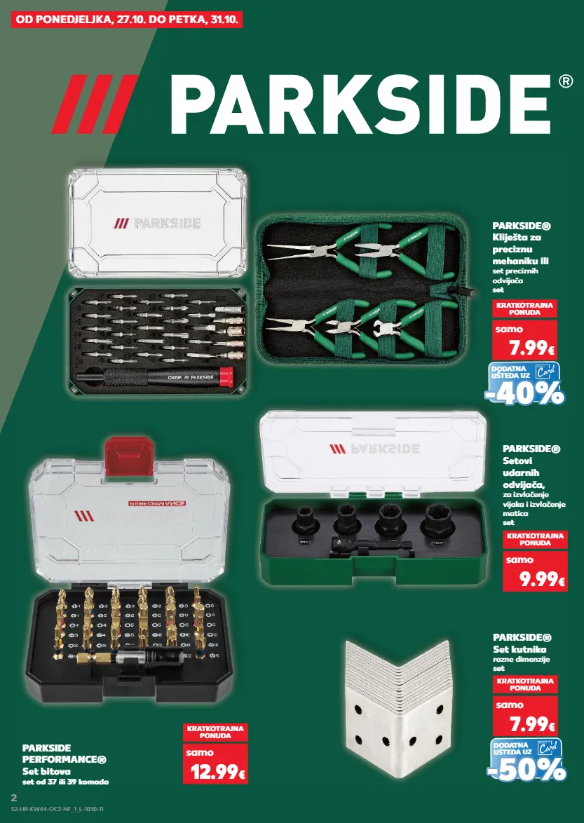 7.99 € OD PONEDJELJKA, 27.10. DO PETKA, 31.10. PARKSIDE® Setovi udarnih odvijača, za izvlačenje vijaka i izvlačenje matica set KRATKOTRAJNA PONUDA samo 9.99 € PARKSIDE PERFORMANCE® Set bitova set od 37 ili 39 komada KRATKOTRAJNA PONUDA samo 12.99 € DODATNA UŠTEDA UZ PARKSIDE® Kliješta za preciznu mehaniku ili set preciznih odvijača set KRATKOTRAJNA PONUDA samo 7.99 € - - 40% 40% PARKSIDE® Set kutnika razne dimenzije set KRATKOTRAJNA PONUDA samo 7.99 € DODATNA UŠTEDA UZ - - 50% 50% S2-HR-KW44-OC2-NF_1_L-1030-11 2