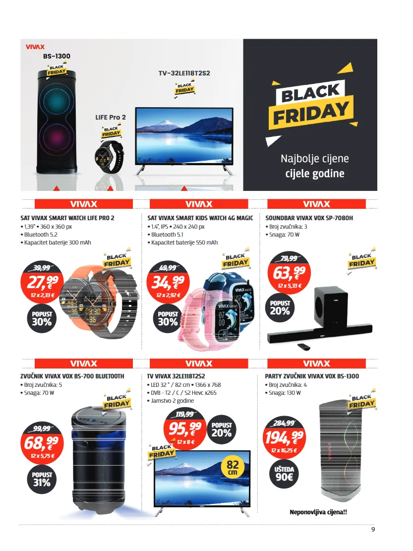 9 sat vivax smart watch life pro 2 • • 1,39" 360 x 360 px bluetooth 5.2 • kapacitet baterije 300 mah • 39,99 27,⁹⁹ € 12 x 2,33 € popust 30% sat vivax smart kids watch 4g magic • • 1.4", ips 240 x 240 px bluetooth 5.1 • kapacitet baterije 550 mah • soundbar vivax vox sp-7080h • broj zvučnika: 3 snaga: 70 w • 49,99 34,⁹⁹ € 12 x 2,92 € popust 30% 79,99 63,⁹⁹ € 12 x 5,33 € popust 20% zvučnik vivax vox bs-700 bluetooth • broj zvučnika: 5 snaga: 70 w • 99,99 68,⁹⁹ € 12 x 5,75 € popust 31% tv vivax 32le118t2s2 • • led 32 " / 82 cm 1366 x 768 dvb - t2 / c / s2 hevc x265 • jamstvo 2 godine • 119,99 95,⁹⁹ € 12 x 8 € popust 20% 82 cm party zvučnik vivax vox bs-1300 • broj zvučnika: 4 snaga: 130 w • neponovljiva cijena!! 284,99 194,⁹⁹ € 12 x 16,25 € ušteda 90€