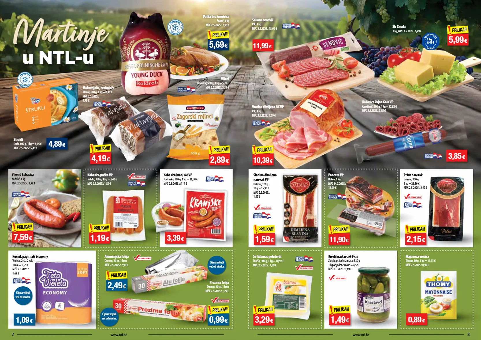Ponuda vrijedi u Supermarketima i Marketima NTL na području Varaždinske, Koprivničko-križevačke i Međimurske županije; od 05.11. do 11.11.2025. ili do isteka zaliha. Referentna cijena iskazana uz proizvode u ovom katalogu predstavlja najvišu maloprodajnu cijenu tog proizvoda zabilježenu u našoj mreži trgovina na dan 02.05.2025. Cijene su izražene u eurima. Za eventualne tiskarske pogreške ne preuzimamo odgovornost. Fotografije ne moraju u potpunosti odgovarati stvarnom izgledu proizvoda. Moguće su pogreške u objavljenom materijalu. Kupci se pozivaju da točne cijene provjere kod trgovaca. Zbog ograničenosti prostora svi proizvodi nisu dostupni u svim NTL trgovinama.