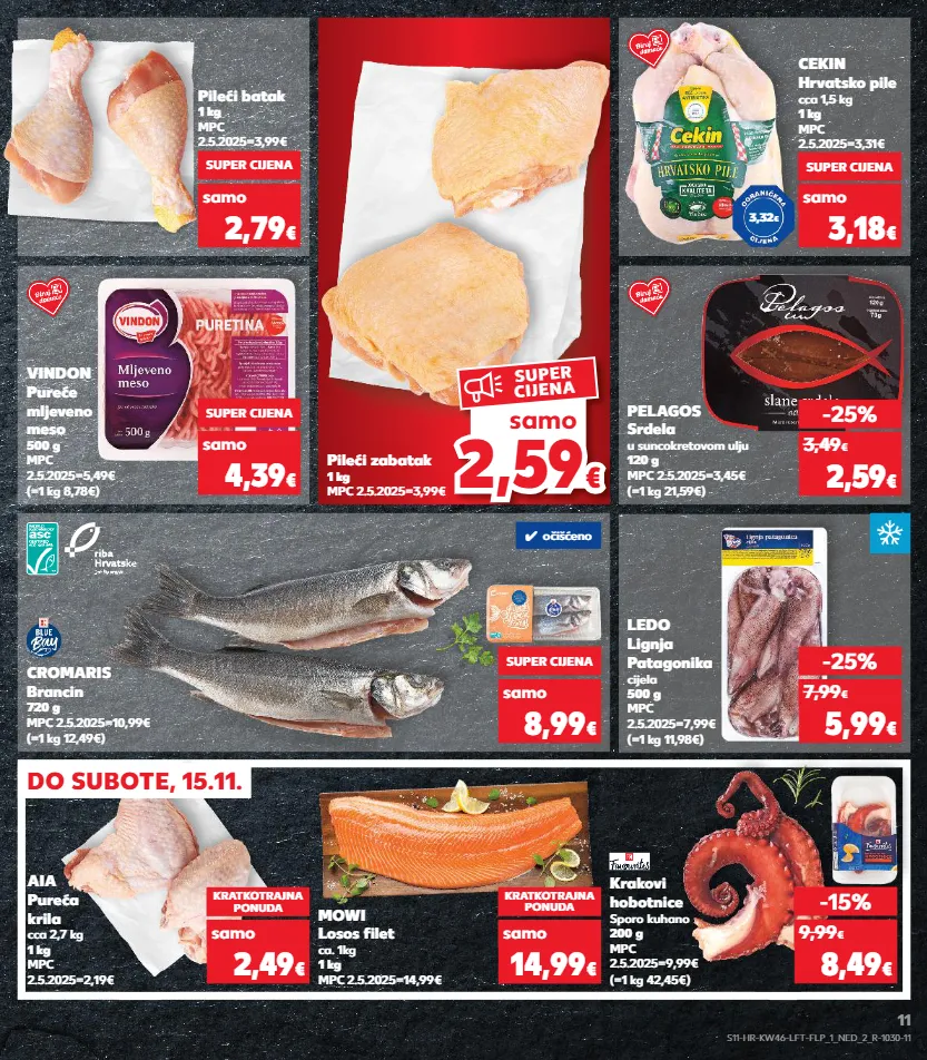 kratkotrajna ponuda samo kratkotrajna ponuda samo kratkotrajna ponuda samo kratkotrajna ponuda samo samo kratkotrajna ponuda samo samo kratkotrajna ponuda samo kratkotrajna ponuda samo vindon pureće mljeveno meso 500 g mpc 2.5.2025=5,49€ (=1 kg 8,78€) cromaris brancin 720 g mpc 2.5.2025=10,99€ (=1 kg 12,49€) super cijena 4,39 € samo pileći zabatak 1 kg mpc 2.5.2025=3,99€ super cijena 8,99 € samo pelagos srdela u suncokretovom ulju 120 g mpc 2.5.2025=3,45€ (=1 kg 21,59€) mowi losos filet ca. 1kg 1 kg mpc 2.5.2025=14,99€ ledo lignja patagonika cijela 500 g mpc 2.5.2025=7,99€ (=1 kg 11,98€) -25% 5,99 € 7,99 € -25% 2,59 € 3,49 € kratkotrajna ponuda 14,99 € samo pileći batak 1 kg mpc 2.5.2025=3,99€ super cijena 2,79 € samo aia pureća krila cca 2,7 kg 1 kg mpc 2.5.2025=2,19€ kratkotrajna ponuda 2,49 € samo krakovi hobotnice sporo kuhano 200 g mpc 2.5.2025=9,99€ (=1 kg 42,45€) -15% 8,49 € 9,99 € cekin hrvatsko pile cca 1,5 kg 1 kg mpc 2.5.2025=3,31€ super cijena 3,18 € samo 3,32 € ✓ očišćeno 2,5 9 2,59 € € samo super cijena do subote, 15.11. s11-hr-kw46-lft-flp_1_ned_2_r-1030-11 11