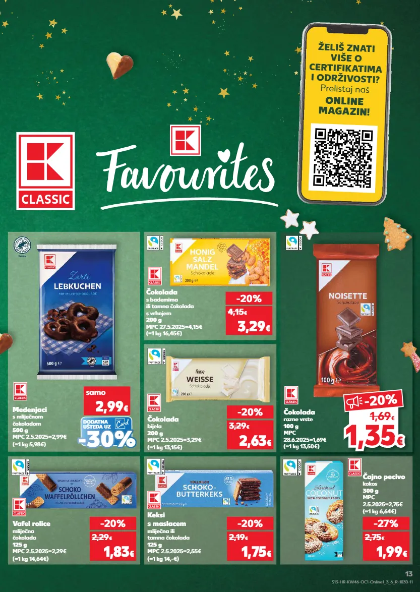 kratkotrajna ponuda samo kratkotrajna ponuda samo kratkotrajna ponuda samo kratkotrajna ponuda samo kratkotrajna ponuda samo želiš znati više o certifikatima i odr živosti? prelistaj naš online magazin! vafel rolice mliječna čokolada 125 g mpc 2.5.2025=2,29€ (=1 kg 14,64€) -20% 1,83 € 2,29 € keksi s maslacem mliječna ili tamna čokolada 125 g mpc 2.5.2025=2,55€ (=1 kg 14,-€) -20% 1,75 € 2,19 € čokolada bijela 200 g mpc 2.5.2025=3,29€ (=1 kg 13,15€) -20% 2,63 € 3,29 € (=1 kg 16,45€) čokolada s bademima ili tamna čokolada s vrhnjem 200 g mpc 27.5.2025=4,15€ -20% 3,29 € 4,15 € (=1 kg 13,50€) čokolada razne vrste 100 g mpc 28.6.2025=1,69€ (=1 kg 5,98€) medenjaci s mliječnom čokoladom 500 g mpc 2.5.2025=2,99€ čajno pecivo kokos 300 g mpc 2.5.2025=2,75€ (=1 kg 6,64€) -27% 1,99 € 2,75 € samo 2,99 € - - 30% 30% dodatna ušteda uz 1,3 5 1,35 € € -20 % 1,69 € s13-hr-kw46-oc1-online1_3_6_r-1030-11 13