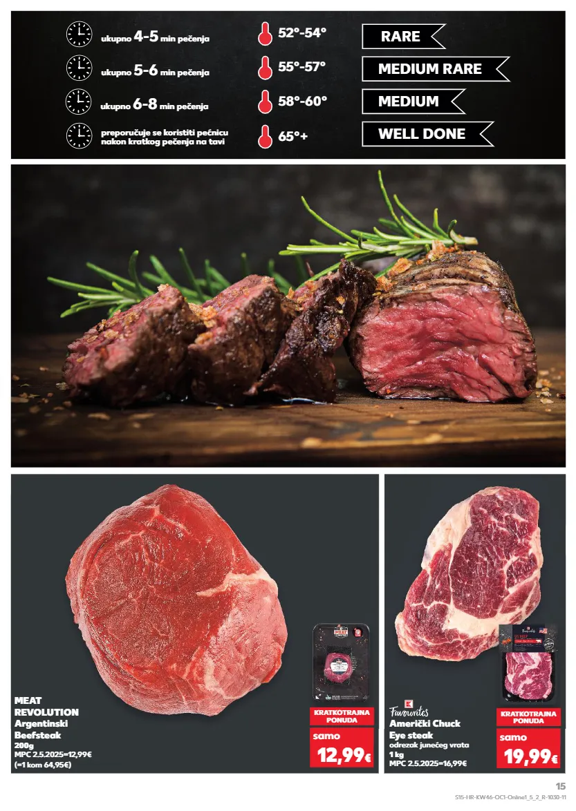 super cijena samo samo rare medium rare medium well done ukupno 4-5 min pečenja ukupno 5-6 min pečenja ukupno 6-8 min pečenja preporučuje se koristiti pećnicu nakon kratkog pečenja na tavi 52°-54° 55°-57° 58°-60° 65°+ američki chuck eye steak odrezak junećeg vrata 1 kg mpc 2.5.2025=16,99€ kratkotrajna ponuda 19,99 € meat revolution argentinski beefsteak 200g mpc 2.5.2025=12,99€ (=1 kom 64,95€) kratkotrajna ponuda 12,99 € samo samo s15-hr-kw46-oc1-online1_5_2_r-1030-11 15