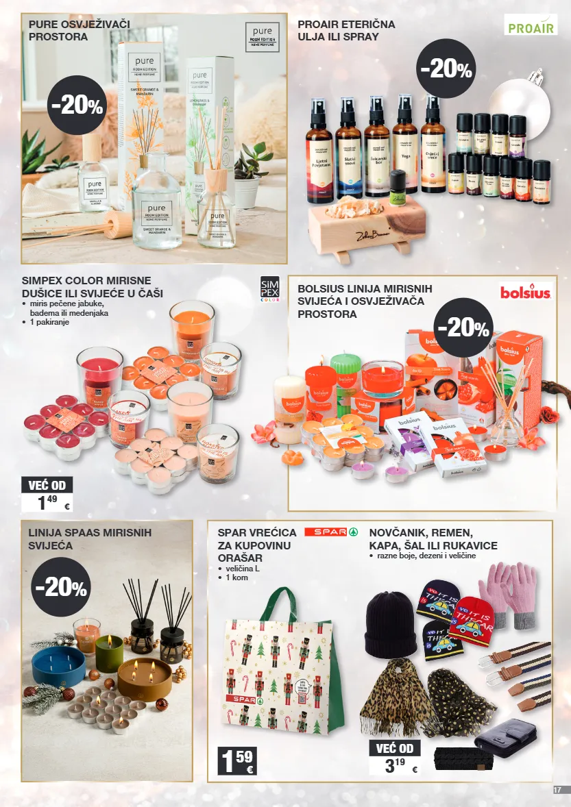 1 49 € već od 3 19 € već od -20 % -20 % -20 % simpex color mirisne dušice ili svijeće u čaši • miris pečene jabuke, badema ili medenjaka • 1 pakiranje spar vrećica za kupovinu orašar • veličina l • 1 kom novčanik, remen, kapa, šal ili rukavice • razne boje, dezeni i veličine pure osvježivači prostora proair eterična ulja ili spray bolsius linija mirisnih svijeća i osvježivača prostora linija spaas mirisnih svijeća -20 % 1 59 € 17