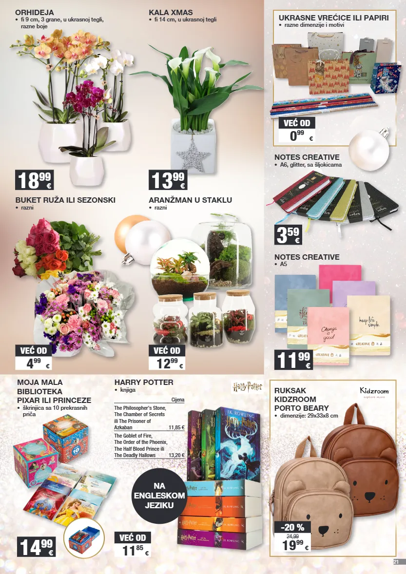 ukrasne vrećice ili papiri • razne dimenzije i motivi 0 99 € već od notes creative • a6, glitter, sa šljokicama 3 59 € 4 99 € već od buket ruža ili sezonski • razni 12 99 € već od aranžman u staklu • razni notes creative • a5 11 99 € kala xmas • fi 14 cm, u ukrasnoj tegli 13 99 € orhideja • fi 9 cm, 3 grane, u ukrasnoj tegli, razne boje 18 99 € ruksak kidzroom porto beary • dimenzije: 29x33x8 cm -20 % 19 99 24,99 € 11 85 € već od harry potter • knjiga cijena the philosopher’s stone, the chamber of secrets ili the prisoner of azkaban 11,85 € the goblet of fire, the order of the phoenix, the half blood prince ili the deadly hallows 13,20 € na engleskom jeziku moja mala biblioteka pixar ili princeze • škrinjica sa 10 prekrasnih priča 14 99 € 21