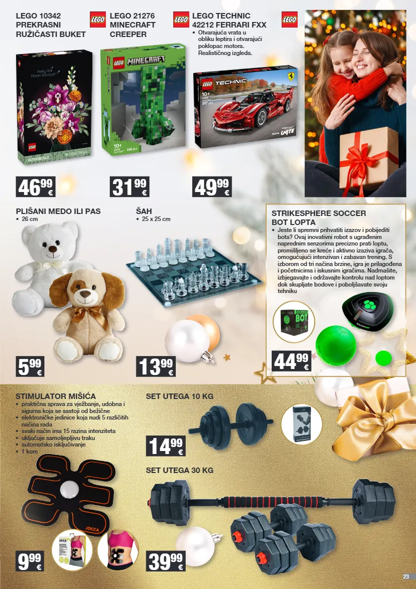 lego 10342 prekrasni ružičasti buket lego 21276 minecraft creeper lego technic 42212 ferrari fxx • otvarajuća vrata u obliku leptira i otvarajući poklopac motora. realističnog izgleda. plišani medo ili pas • 26 cm šah • 25 x 25 cm strikesphere soccer bot lopta • jeste li spremni prihvatiti izazov i pobijediti bota? ovaj inovativni robot s ugrađenim naprednim senzorima precizno prati loptu, promišljeno se kreće i aktivno izaziva igrača, omogućujući intenzivan i zabavan trening. s izborom od tri načina brzine, igra je prilagođena i početnicima i iskusnim igračima. nadmašite, izbjegavajte i održavajte kontrolu nad loptom dok skupljate bodove i poboljšavate svoju tehniku stimulator mišića • praktična sprava za vježbanje, udobna i sigurna koja se sastoji od bežične • elektroničke jedinice koja nudi 5 različitih načina rada • svaki način ima 15 razina intenziteta • uključuje samoljepljivu traku • automatsko isključivanje • 1 kom set utega 10 kg set utega 30 kg 46 99 € 31 99 € 49 99 € 5 99 € 13 99 € 44 99 € 9 99 € 14 99 € 39 99 € 23
