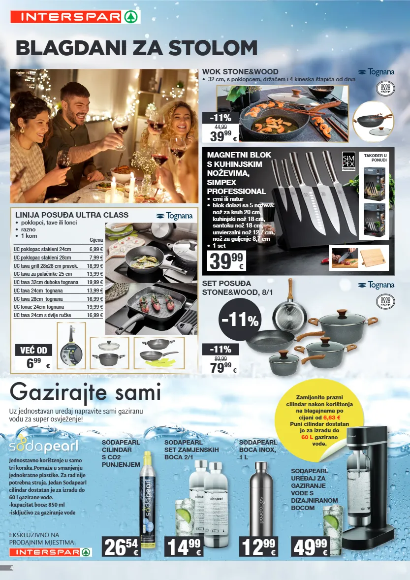 zamijenite prazni cilindar nakon korištenja na blagajnama po cijeni od 6,63 € puni cilindar dostatan je za izradu do 60 l gazirane vode. blagdani za stolom set posuđa stone&wood, 8/1 wok stone&wood • 32 cm, s poklopcem, držačem i 4 kineska štapića od drva sodapearl uređaj za gaziranje vode s dizajniranom bocom sodapearl boca inox, 1 l sodapearl set zamjenskih boca 2/1 sodapearl cilindar s co2 punjenjem 49 99 € 12 99 € 14 99 € 26 54 € uz jednostavan uređaj napravite sami gaziranu vodu za super osvježenje! gazirajte sami jednostavno korištenje u samo tri koraka.pomaže u smanjenju jednokratne plastike. za rad nije potrebna struja. jedan sodapearl cilindar dostatan je za izradu do 60 l gazirane vode. -kapacitet boce: 850 ml -isključivo za gaziranje vode ekskluzivno na prodajnim mjestima također u ponudi magnetni blok s kuhinjskim noževima, simpex professional • crni ili natur • blok dolazi sa 5 noževa: nož za kruh 20 cm, kuhinjski nož 18 cm, santoku nož 18 cm, unvierzalni nož 12,7 cm, nož za guljenje 8,7 cm • 1 set 39 99 € -11% 39 99 44,99 € -11% 79 99 89,99 € linija posuđa ultra class • poklopci, tave ili lonci • razno • 1 kom cijena uc poklopac stakleni 24cm 6,99 € uc poklopac stakleni 28cm 7,99 € uc tava grill 28x28 cm pravok. 18,99 € uc tava za palačinke 25 cm 13,99 € uc tava 32cm duboka tognana 19,99 € uc tava 24cm tognana 13,99 € uc tava 28cm tognana 16,99 € uc lonac 24cm tognana 19,99 € uc tava 24cm s dvije ručke 16,99 € 6 99 € već od -11 % 4