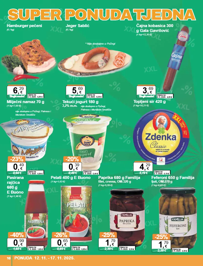 xxl xxl xxl xxl xxl xxl xxl xxl xxl xxl xxl xxl xxl xxl xxl xxl xxl xxl xxl xxl xxl xxl xxl xxl xxl xxl xxl xxl xxl xxl xxl xxl -% -% -% -% -% -% -% -% -% -% -% -% % -% -% -% -% -% -% -% -% -% -% -% -% -% -% -% -% -% -% -% -% super ponuda tjedna super ponuda tjedna cijena na 2. 5. 2025: 6,99 € cijena na 2. 5. 2025: 5,19 € cijena na 2. 5. 2025: 0,64 € cijena na 2. 5. 2025: 0,44 € cijena na 2. 5. 2025: 1,65 € cijena na 2. 5. 2025: 0,89 € cijena na 2. 5. 2025: 2,39 € cijena na 2. 5. 2025: 2,39 € cijena na 2. 5. 2025: 4,69 € hamburger pečeni (€ / kg) birajte mudro! 6 , 29 € cijena na 2. 5. 2025: 8,39 € * nije dostupno u požegi jeger sablić (€ / kg) birajte mudro! 5 , 69 € topljeni sir 420 g (1 kg=10,21 €) 5,19 € 4 , 29 € mliječni namaz 70 g (1 kg=7,00 €) -23% 0,64 € 0 , 49 € tekući jogurt 180 g 3,2% m.m. -20% 0,49 € 0 , 39 € pasirana rajčica 680 g e buono (1 kg=1,46 €) -40% 1,65 € 0 , 99 € pelati 400 g e buono (1 kg=1,63 €) -26% 0,89 € 0 , 65 € paprika 680 g familija filet, crvena, om:320 g (1 kg=5,59 €) -25% 2,39 € 1 , 79 € feferoni 650 g familija ljuti, om:270 g (1 kg=6,63 €) -25% 2,39 € 1 , 79 € čajna kobasica 300 g gala gavrilović (1 kg=12,30 €) birajte mudro! 3 , 69 € nije dostupno u požegi, pakracu i murskom središću nije dostupno u požegi, pakracu i murskom središću ponuda 12. 11. - 17. 11. 2025. 10 10