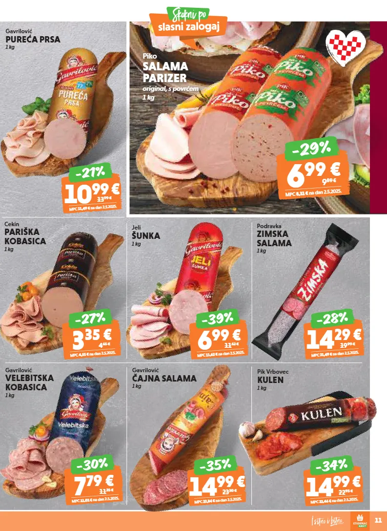 -30% 7 79 € mpc 11,01 € na dan 2.5.2025. 11 25 € gavrilović velebitska kobasica 1 kg -34% 14 99 € mpc 22,46 € na dan 2.5.2025. 22 95 € pik vrbovec kulen 1 kg 11 skokni po slasni zalogaj -29% 6 99 € mpc 8,31 € na dan 2.5.2025. 9 89 € piko salama parizer original, s povrćem 1 kg gavrilović pureća prsa 1 kg -21% 10 99 € mpc 11,49 € na dan 2.5.2025. 13 99 € cekin pariška kobasica 1 kg -27% 3 35 € mpc 4,55 € na dan 2.5.2025. 4 65 € podravka zimska salama 1 kg -28% 14 29 € mpc 21,49 € na dan 2.5.2025. 19 99 € -39% 6 99 € mpc 11,62 € na dan 2.5.2025. 11 62 € jeli šunka 1 kg gavrilović čajna salama 1 kg -35% 14 99 € mpc 22,84 € na dan 2.5.2025. 23 30 €