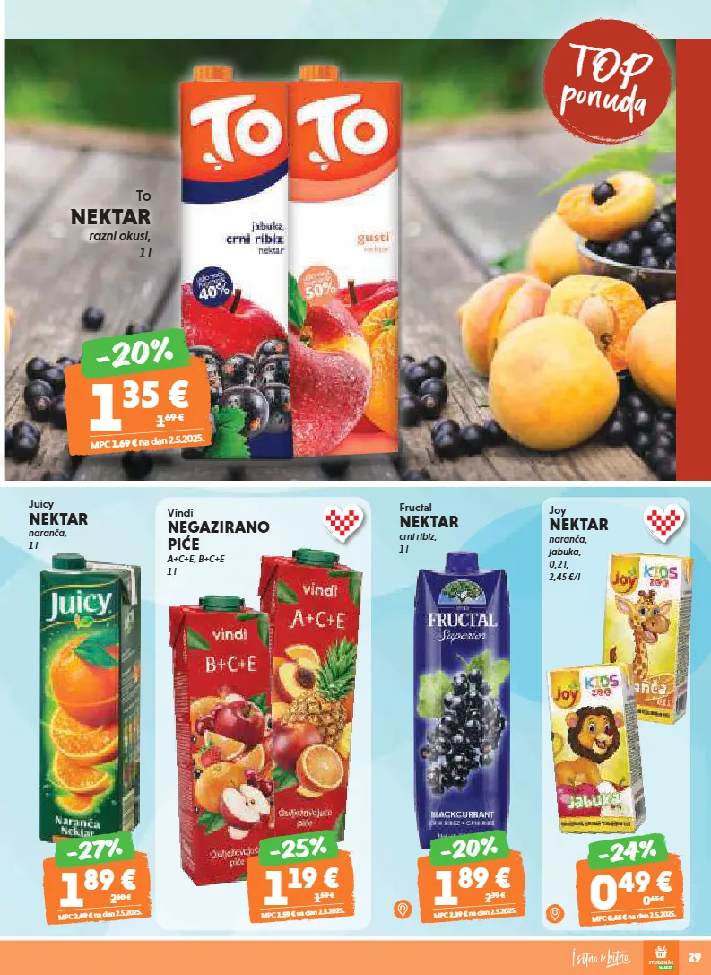 29 top top ponuda to nektar razni okusi, 1 l -27% 1 89 € mpc 2,49 € na dan 2.5.2025. 2 60 € juicy nektar naranča, 1 l fructal nektar crni ribiz, 1 l -20% 1 89 € mpc 2,39 € na dan 2.5.2025. 2 39 € joy nektar naranča, jabuka, 0,2 l, 2,45 €/l -24% 0 49 € mpc 0,65 € na dan 2.5.2025. 0 65 € vindi negazirano piće a+c+e, b+c+e 1 l -20% 1 35 € mpc 1,69 € na dan 2.5.2025. 1 69 € -25% 1 19 € mpc 1,59 € na dan 2.5.2025. 1 59 €