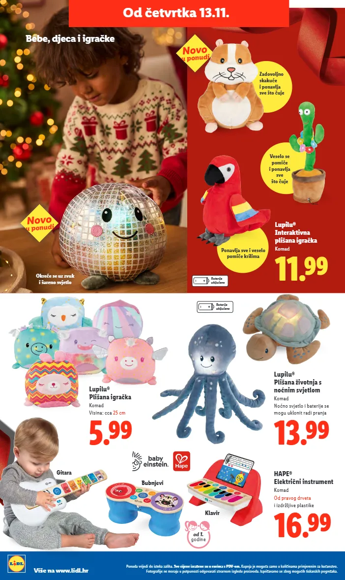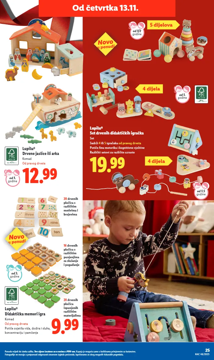 Od četvrtka 13.11. br. 1 robna marka drvenih igračaka u Europi. *Izvor: Euromonitor International Limited; u smis lu maloprodajne vrijednosti (RSP) u 2024., na temelju naručen og istraž ivanja provedenog u travnju 2025. Drvene igračke definirane su kao zbroj tradicionalnih igračaka i igara izrađenih pretežno od drva. Europa obu hvaća Zapadnu i Istočn u Europu, izuzev Rusije, Ukrajine i Turske. Source: # 1 br. 1 robna marka drvenih igračaka u Europi. Lupilu kombinira robne marke Playtive i Lupilu.* lupilu® Ponuda vrijedi do isteka zaliha. Sve cijene izražene su u eurima s PDV-om. Kupnja je moguća samo u količinama primjerenim za kućanstvo. Fotografije ne moraju u potpunosti odgovarati stvarnom izgledu proizvoda. Ispričavamo se zbog mogućih tiskarskih pogrešaka. Više na www.lidl.hr