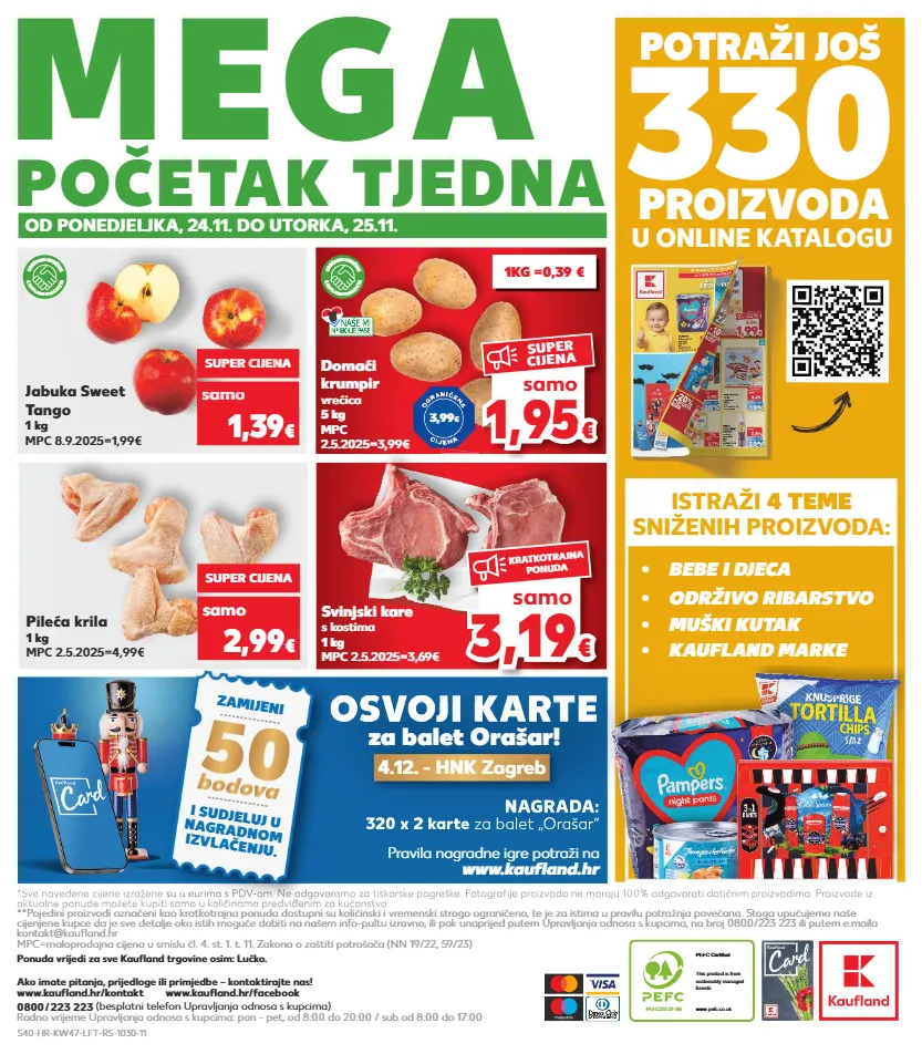 kratkotrajna ponuda samo kratkotrajna ponuda pravila nagradne igre potraži na www.kaufl and.hr 320 x 2 karte za balet „orašar“ nagrada: 3,19 € samo kratkotrajna ponuda 1,95 € € samo super cijena pefc/23-31-86 pefc certified this product is from sustainably managed forests www.pefc.co.uk 330 u online katalogu potraži još proizvoda istraži 4 teme sniženih proizvoda: početak tjedna mega *sve navedene cijene izražene su u eurima s pdv-om. ne odgovaramo za tiskarske pogreške. fotografije proizvoda ne moraju 100% odgovarati dotičnim proizvodima. proizvode iz aktualne ponude možete kupiti samo u količinama predviđenim za kućanstvo. **pojedini proizvodi označeni kao kratkotrajna ponuda dostupni su količinski i vremenski strogo ograničeno, te je za istima u pravilu potražnja povećana. stoga upućujemo naše cijenjene kupce da je sve detalje oko istih moguće dobiti na našem info-pultu izravno, ili pak unaprijed putem upravljanja odnosa s kupcima, na broj 0800/223 223 ili putem e.maila kontakt@kaufland.hr mpc=maloprodajna cijena u smislu čl. 4. st. 1. t. 11. zakona o zaštiti potrošača (nn 19/22, 59/23) 0800 / 223 223 (besplatni telefon upravljanja odnosa s kupcima) radno vrijeme upravljanja odnosa s kupcima: pon - pet, od 8:00 do 20:00 / sub od 8:00 do 17:00 ako imate pitanja, prijedloge ili primjedbe – kontaktirajte nas! www.kaufland.hr/kontakt www.kaufland.hr/facebook • bebe i djeca • kaufland marke • muški kutak • održivo ribarstvo od ponedjeljka, 24.11. do utorka, 25.11. *sve navedene cijene izražene su u eurima s pdv-om. ne odgovaramo za tiskarske pogreške. fotografije proizvoda ne moraju 100% odgovarati dotičnim proizvodima. proizvode iz aktualne ponude možete kupiti samo u količinama predviđenim za kućanstvo. zamijeni i sudjeluj u nagradnom izvlačenju. osvoji karte 320 x 2 karte za balet „orašar“ nagrada: osvoji karte za balet orašar! 4.12. - hnk zagreb svinjski kare s kostima 1 kg mpc 2.5.2025=3,69€ pileća krila 1 kg mpc 2.5.2025=4,99€ super cijena 2,99 € samo jabuka sweet tango 1 kg mpc 8.9.2025=1,99€ domaći krumpir vrećica 5 kg mpc 2.5.2025=3,99€ k a u f l a n d k v a l i t e t a o b e ć a n j e s v j e ž i n e k a u f l a n d k v a l i t e t a o b e ć a n j e s v j e ž i n e super cijena super cijena uper - uper 30% uper cijena 30% uper cijena samo 1,39 € sa o 1,99 samo 1,99 sam 1,99 samo 1,99 sam samo o € o 3,99 € ponuda vrijedi za sve kaufland trgovine osim: lučko. 1kg =0,39 € s40-hr-kw47-lft-rs-1030-11