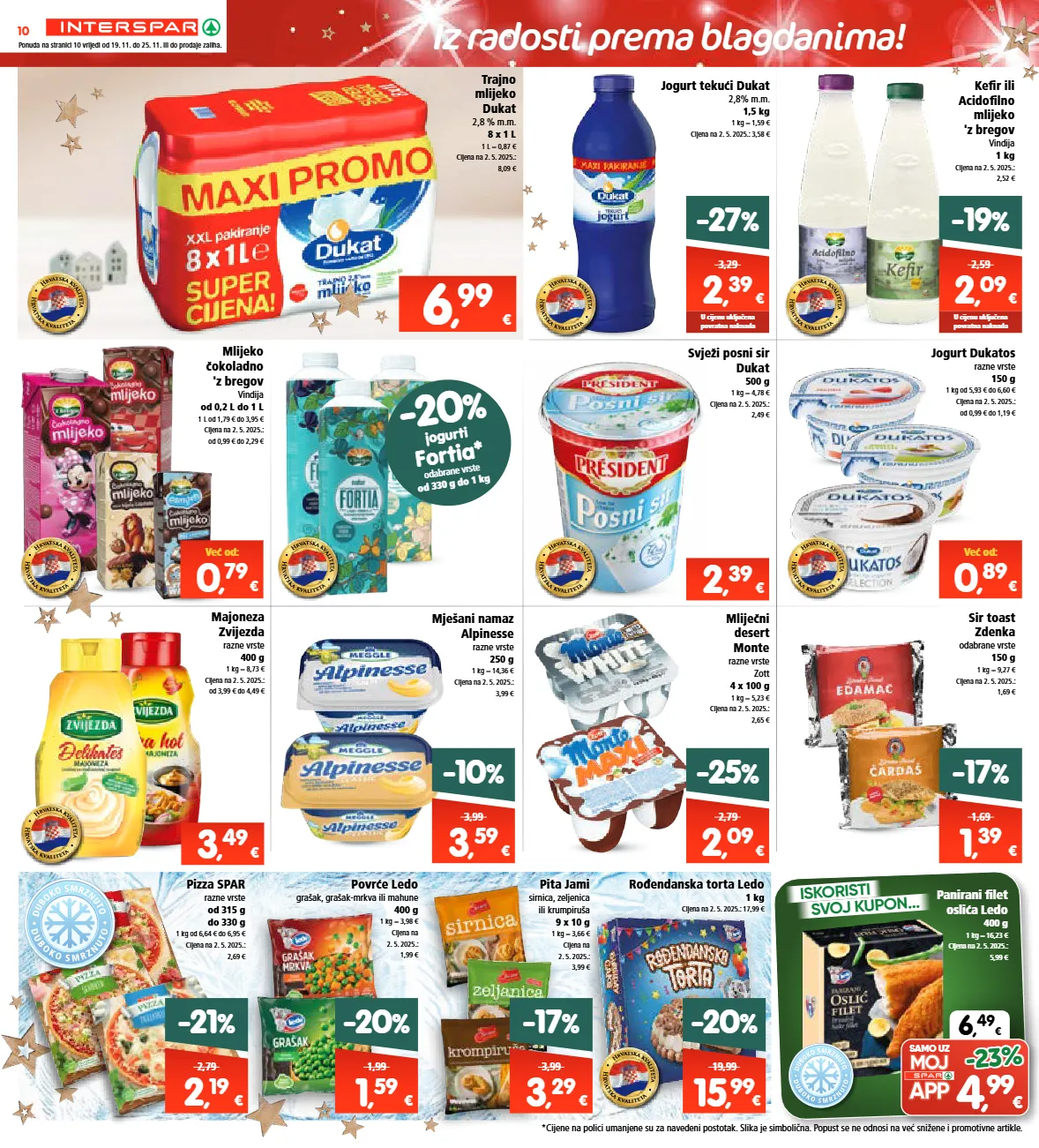 6 , 49 € samo uz 4 , 99 € -23% -23% iskoristi svoj kupon... trajno mlijeko dukat 2,8 % m.m. 8 x 1 l 1 l = 0,87 € cijena na 2. 5. 2025.: 8,09 € jogurt tekući dukat 2,8% m.m. 1,5 kg 1 kg = 1,59 € cijena na 2. 5. 2025.: 3,58 € 2 , 39 € 3,29 -27 % 2 , 09 € 2,79 -25 % 1 , 59 € 1,99 -20 % 3 , 29 € 3,99 -17 % 15 , 99 € 19,99 -20 % 2 , 19 € 2,79 -21 % 1 , 39 € 1,69 -17 % 3 , 59 € 3,99 -10 % 2 , 09 € 2,59 -19 % kefir ili acidofilno mlijeko 'z bregov vindija 1 kg cijena na 2. 5. 2025.: 2,52 € u cijenu uključena povratna naknada u cijenu uključena povratna naknada mlijeko čokoladno 'z bregov vindija od 0,2 l do 1 l 1 l od 1,79 € do 3,95 € cijena na 2. 5. 2025.: od 0,99 € do 2,29 € 0 , 79 € već od: 0 , 89 € već od: -20 % jogurti fortia* odabrane vrste od 330 g do 1 kg jogurt dukatos razne vrste 150 g 1 kg od 5,93 € do 6,60 € cijena na 2. 5. 2025.: od 0,99 € do 1,19 € svježi posni sir dukat 500 g 1 kg = 4,78 € cijena na 2. 5. 2025.: 2,49 € 2 , 39 € 3 , 49 € mliječni desert monte razne vrste zott 4 x 100 g 1 kg = 5,23 € cijena na 2. 5. 2025.: 2,65 € majoneza zvijezda razne vrste 400 g 1 kg = 8,73 € cijena na 2. 5. 2025.: od 3,99 € do 4,49 € mješani namaz alpinesse razne vrste 250 g 1 kg = 14,36 € cijena na 2. 5. 2025.: 3,99 € sir toast zdenka odabrane vrste 150 g 1 kg = 9,27 € cijena na 2. 5. 2025.: 1,69 € povrće ledo grašak, grašak-mrkva ili mahune 400 g 1 kg = 3,98 € cijena na 2. 5. 2025.: 1,99 € pizza spar razne vrste od 315 g do 330 g 1 kg od 6,64 € do 6,95 € cijena na 2. 5. 2025.: 2,69 € pita jami sirnica, zeljenica ili krumpiruša 9 x 10 g 1 kg = 3,66 € cijena na 2. 5. 2025.: 3,99 € rođendanska torta ledo 1 kg cijena na 2. 5. 2025.: 17,99 € panirani filet oslića ledo 400 g 1 kg = 16,23 € cijena na 2. 5. 2025.: 5,99 € 10 *cijene na polici umanjene su za navedeni postotak. slika je simboližna. popust se ne odnosi na več sničene i promotivne artikle. ponuda na stranici 10 vrijedi od 19. 11. do 25. 11. ili do prodaje zaliha. iz radosti prema blagdanima! h r v a t s k a k v a l i t e t a h r v a t s k a k v a l i t e t a h r v a t s k a k v a l i t e t a h r v a t s k a k v a l i t e t a h r v a t s k a k v a l i t e t a h r v a t s k a k v a l i t e t a h r v a t s k a k v a l i t e t a h r v a t s k a k v a l i t e t a h r v a t s k a k v a l i t e t a h r v a t s k a k v a l i t e t a h r v a t s k a k v a l i t e t a h r v a t s k a k v a l i t e t a h r v a t s k a k v a l i t e t a h r v a t s k a k v a l i t e t a h r v a t s k a k v a l i t e t a h r v a t s k a k v a l i t e t a h r v a t s k a k v a l i t e t a h r v a t s k a k v a l i t e t a 6 , 99 €
