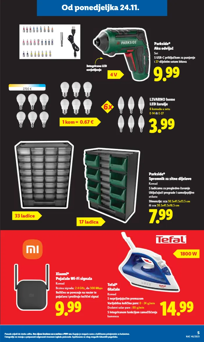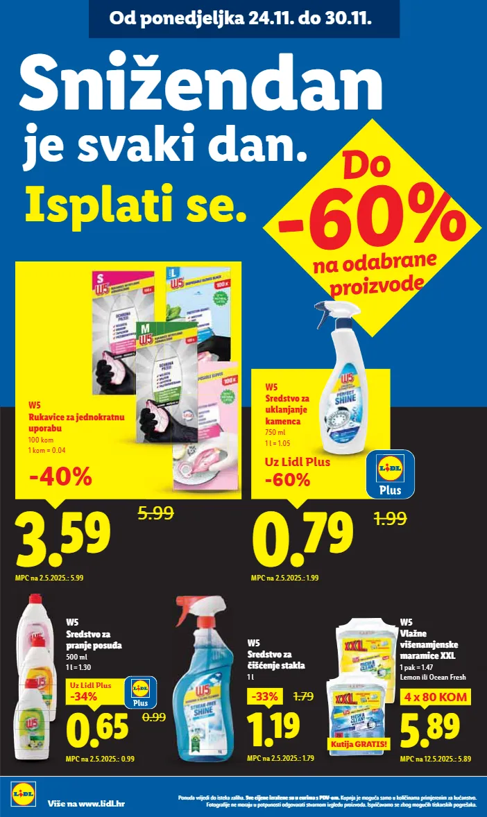 ǭàȕȡǼDzĊȝǿȋ¨ǼǿǼàǿóú¨ÏDzėDzȎǿ½Dzı ]Ċ¨ǿȋ¨ȕ¨ǿėȝDzę¨ȕ¨óȡȡ¨ȡȝǿȔDzóǭǞtƖàȔı ;ȡȜȕȋDzȋ¨Ȕà¸ȡDzóDzȔàȡÏàȎǿ ǿȕDzȔDzȜȝǿȔȋ¨ȝ¨ȕǿȔėDzÏȡDzȕóúĊàı %àúà¸ȝDz³ǿȋ¨ȕ¨ȔàȝDzȋȡȡȜàúȜȡȕàóúǿàǼ¸àĊDzȝDzúǿóúĊDzȝȕàȔǿė¸Ȏ¨ǼȡȜȝàǿėĊàǼDzıǢóȜȝǿ DzĊDzȔàó¨ėà¸Ȕà¸ȡǿ½úǿóÏDzȝóÏǿ½Ȝà¸ȝ¨õDzÏDzı Više na www.lidl.hr biÊÎ 5.99 W5 YÿÏĊÀ¨ę̇¤ÙàÏïúÙÿ ÿìàïÿ 100 kom 1 kom = 0.04 MPC na 2.5.2025.: 5.99 -40% Od ponedjeljka 24.11. do 30.11. je svaki dan. .óìÒúǿó¨ı ]ÙÀę¨Ù¤Ù Uz Lidl Plus -60% _iÌÎ 1.99 W5 ]﨤óúĊàė ÿÏÒÙÌŲ̀ ÏØ¨Ù 750 ml 1 l = 1.05 MPC na 2.5.2025.: 1.99 diÍÎ 4 x 80 KOM MPC na 12.5.2025.: 5.89 W5 tÒęÙ¨ ĊÀõ¨ÙØÌ¨ÙóϨ ØïØÀ¨zz= 1 pak = 1.47 Lemon ili Ocean Fresh ;ÿúǿÌ&Yd.]ĸ W5 ]﨤óúĊàė ìïŲ̀ìàóÿ¦ 500 ml 1 l = 1.30 0.99 _iËÊ -34% Uz Lidl Plus MPC na 2.5.2025.: 0.99 `iÆÎ -33% 1.79 MPC na 2.5.2025.: 1.79 W5 ]﨤óúĊàė Àõ¨Ų̀óúÏÒ 1 l Do -60% na odabrane proizvode Plus