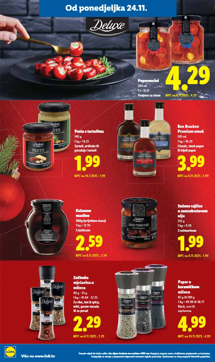 ǭàȕȡǼDzĊȝǿȋ¨ǼǿǼàǿóú¨ÏDzėDzȎǿ½Dzı ]Ċ¨ǿȋ¨ȕ¨ǿėȝDzę¨ȕ¨óȡȡ¨ȡȝǿȔDzóǭǞtƖàȔı ;ȡȜȕȋDzȋ¨Ȕà¸ȡDzóDzȔàȡÏàȎǿ ǿȕDzȔDzȜȝǿȔȋ¨ȝ¨ȕǿȔėDzÏȡDzȕóúĊàı %àúà¸ȝDz³ǿȋ¨ȕ¨ȔàȝDzȋȡȡȜàúȜȡȕàóúǿàǼ¸àĊDzȝDzúǿóúĊDzȝȕàȔǿė¸Ȏ¨ǼȡȜȝàǿėĊàǼDzıǢóȜȝǿ DzĊDzȔàó¨ėà¸Ȕà¸ȡǿ½úǿóÏDzȝóÏǿ½Ȝà¸ȝ¨õDzÏDzı Više na www.lidl.hr T=©© MPC na 24.11.2025.: 4.99 Papar u ϨïØÀ ÏàØ mlincu 85 g ili 100 g 1 kg = 49.90 ili 58.71 Bijeli, crni ili mješavina Q=©© MPC na 6.11.2025.: 1.99 ]ÿõ¨Ù¨ïÌ À¨ ÿóÿÙàÏï¨úàĊàØ ulju 212 g 1 kg = 9.39 ]ïÿęØïÀÙàØ R=¢© MPC na 6.11.2025.: 2.29 ÀÙóÏ mješavina u mlincu 40 g - 55 g 1 kg = 41.64 - 57.25 ïÀÿݽàúļóìÀĒİ ċÀÒ¤İ¸ïØØóÒ ÀÒÀėì¨ï¤ S=©© MPC na 6.11.2025.: 3.99 Ben Bracken Premium umak 245 ml 1 kg = 16.29 ÒóóÀİóú¨Ïììï ÀÒÀĄ̀ÒÀììï À Q=©© MPC na 14.7.2025.: 1.99 V¨óúàóúïúÿμØ 140 g 1 kg = 14.21 dïúÿμİïúÀ àϨÀÒÀ ìï¤ÌėÀúïúÿμ 1 k d ì R=¥© MPC na 6.11.2025.: 2.59 ;ÒØàÙ ØóÒÀÙ¨ Ǝƌƌ¸ŽàĄ̀¦¨Ù¨Øó¨ž 1 kg = 12.95 ]ÏàõúÀàØ V¨ì¨ïàÙÀÙÀ 284 ml 1 l = 15.11 VÿŲ̀٨óóÀïàØ T=¢© MPC na 6.11.2025.: 4.29 Od ponedjeljka 24.11.